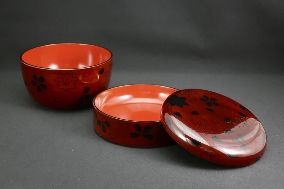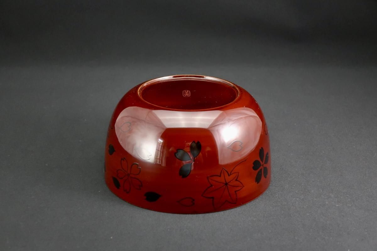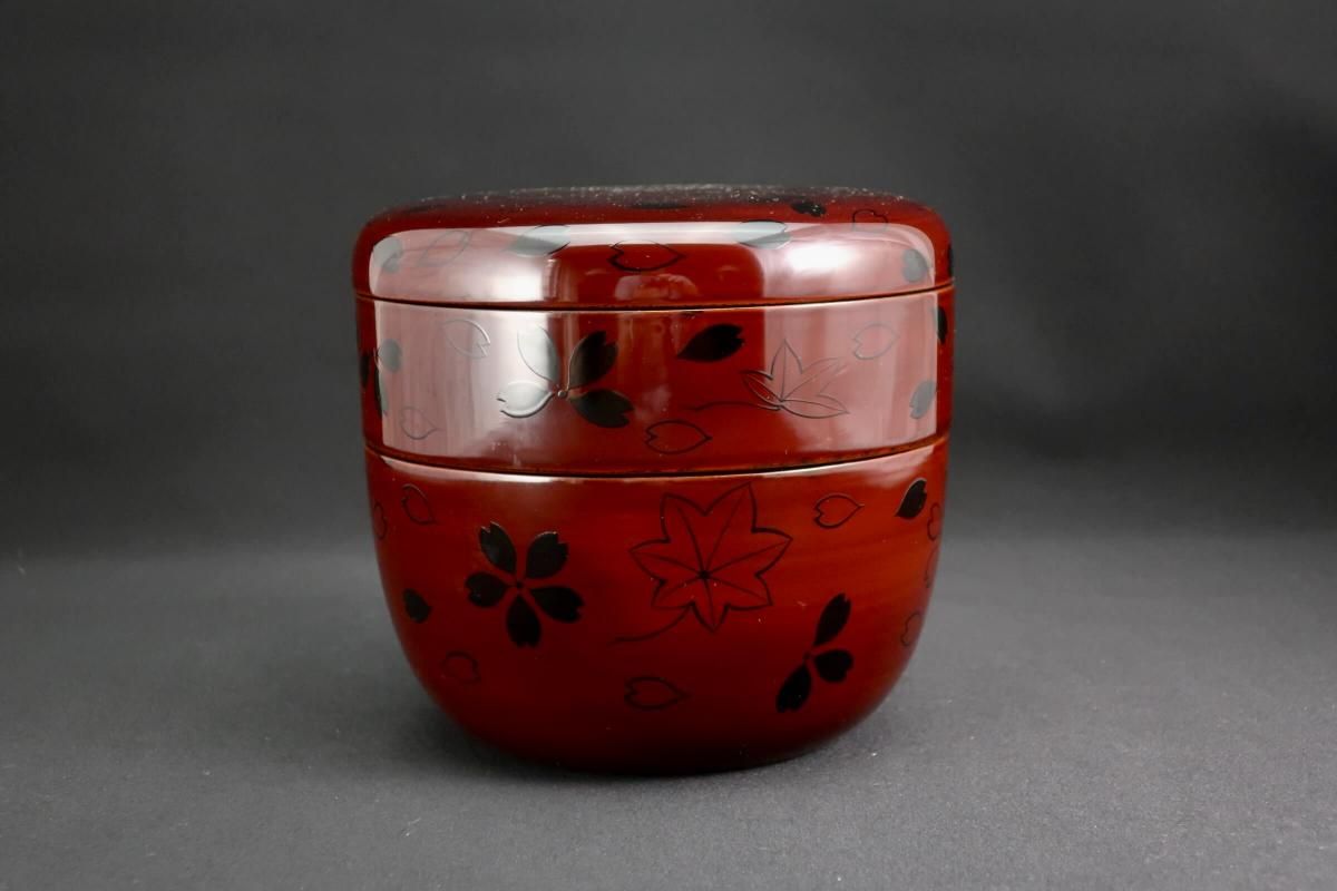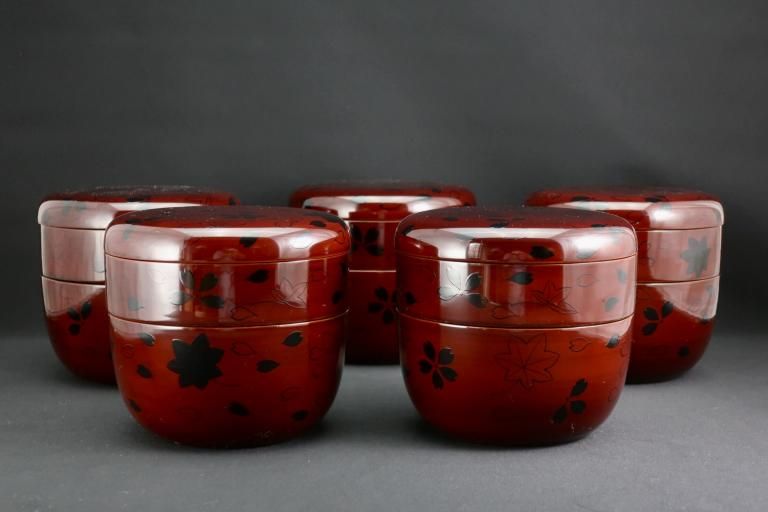 山中塗春秋(雲錦)蒔絵丸弁当箱  五個組 / Yamanaka lacquered 'Bento' Boxes set of 5