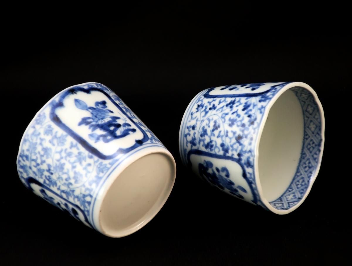 伊万里染付萩唐草窓絵文蕎麦猪口 五客組 / Imari Blue & White Soba Cups set of 5