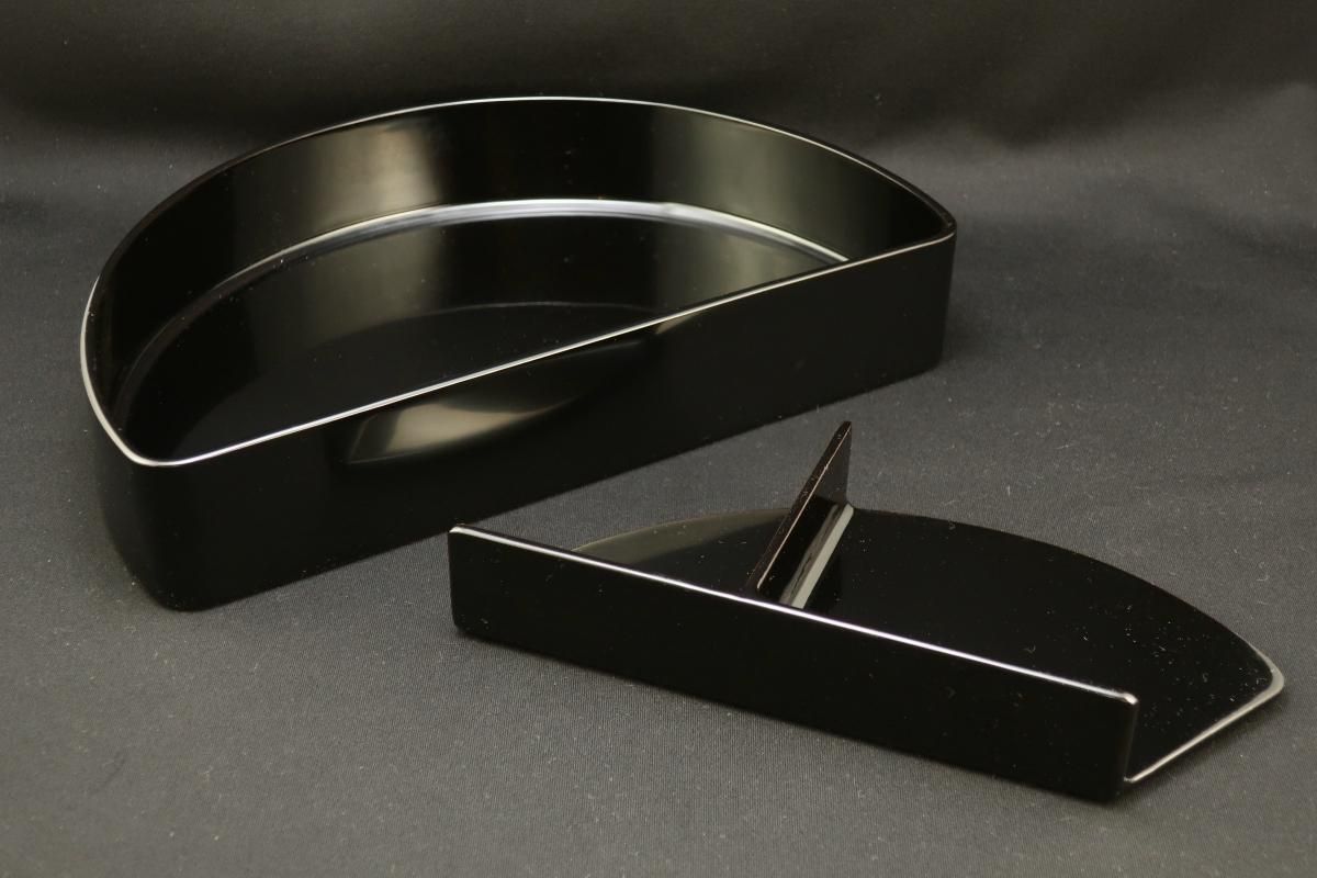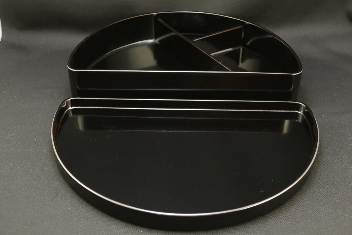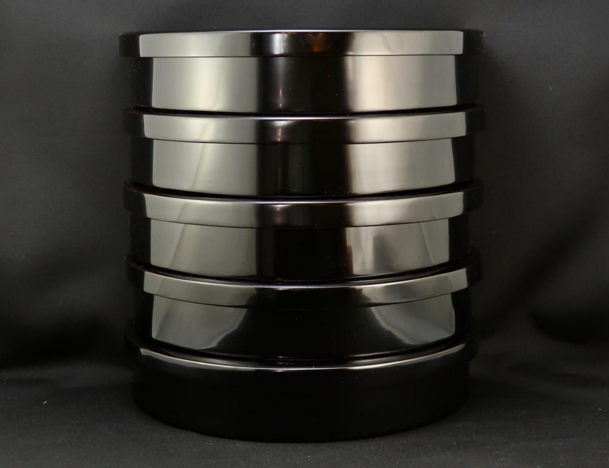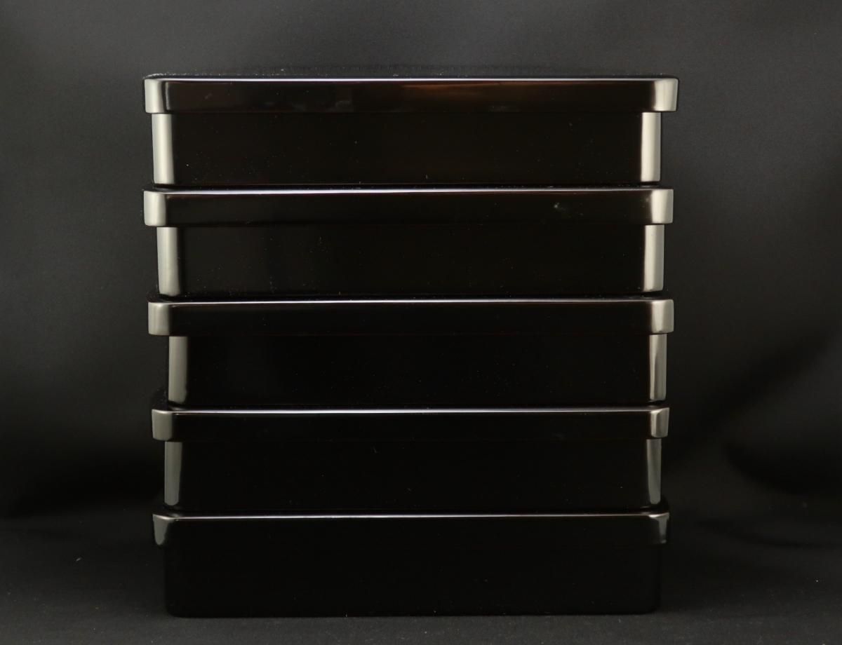 輪島塗布着本堅地半月形弁当箱 五個組 / Wajima-black-lacquered 'Bento'(Lunch) Boxes set of 5