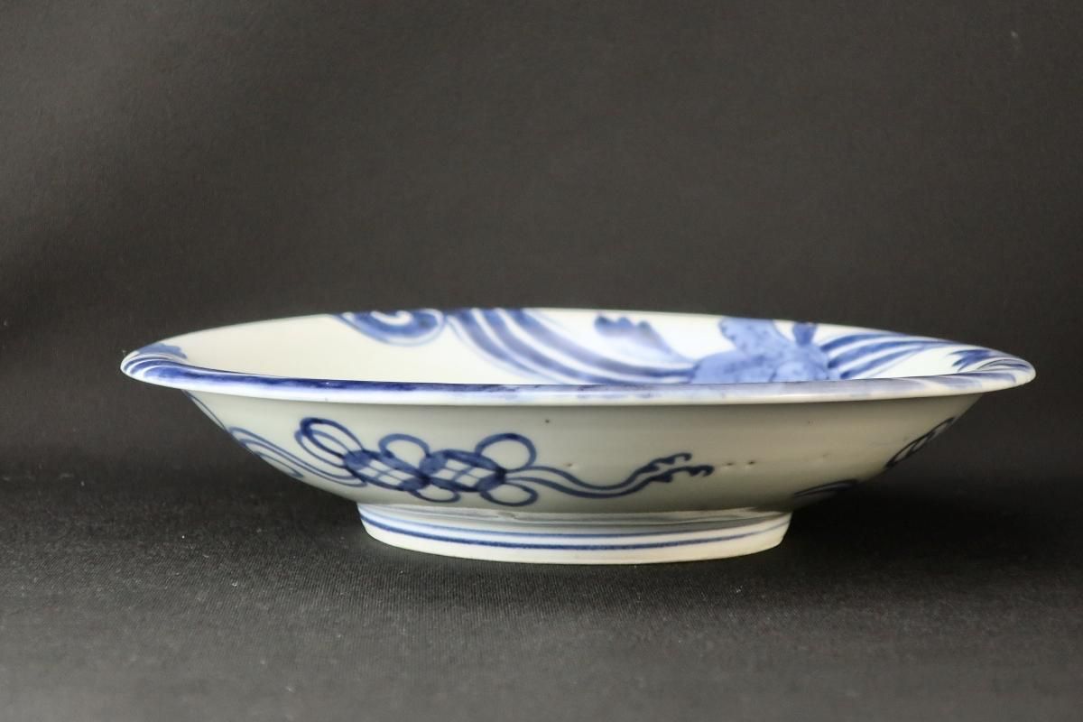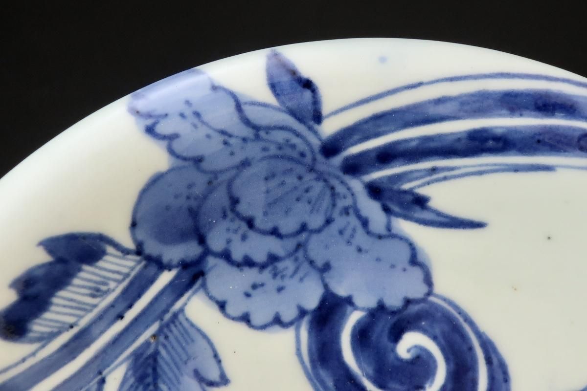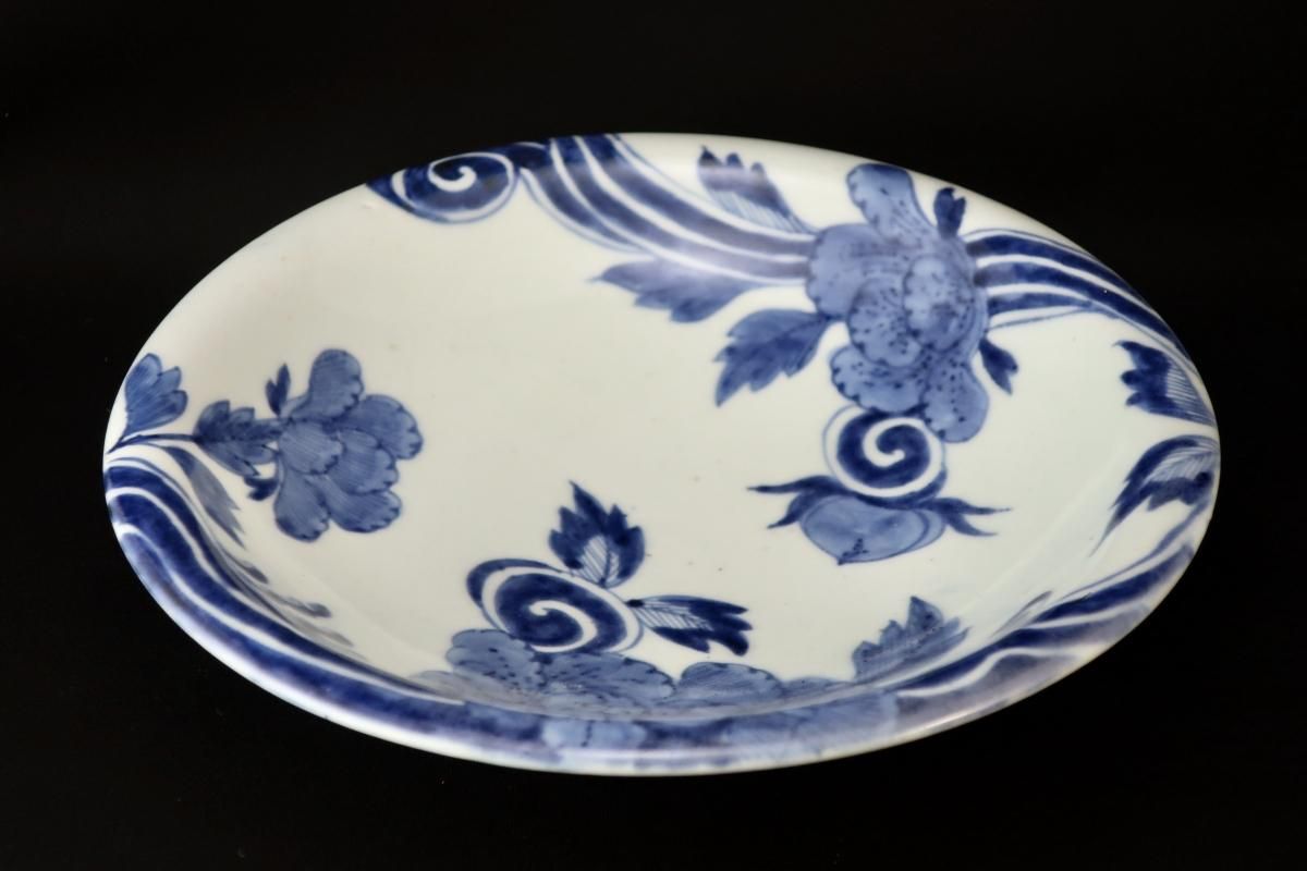 ☆江戸時代の陶工さんの洒落たセンスが伺える牡丹の絵付けが美しい少し深さのある七寸皿。縁をクリンと丸めていたり、高台を小さく取って立体感を出したデザインです。 呉須の発色も綺麗だし、描かれた牡丹の図もダイナミックに描かれています。主役・脇役問わず活躍してくれるこの感じ、お料理人さんが喜んでくれるお皿とも言えるでしょう。多分(?)最初で最後の珍品です。