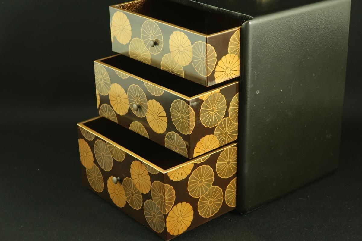 黒塗菊蒔絵菓子箪笥 / Black-lacquered Tansu for Sweet