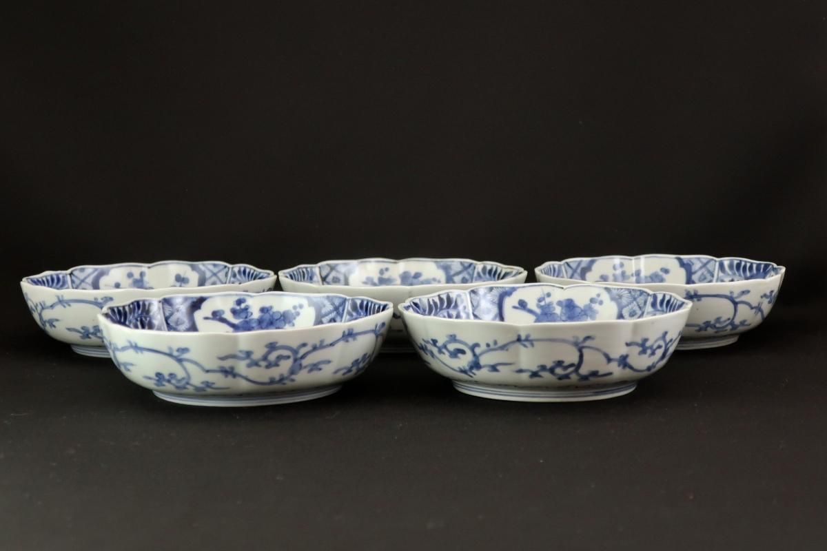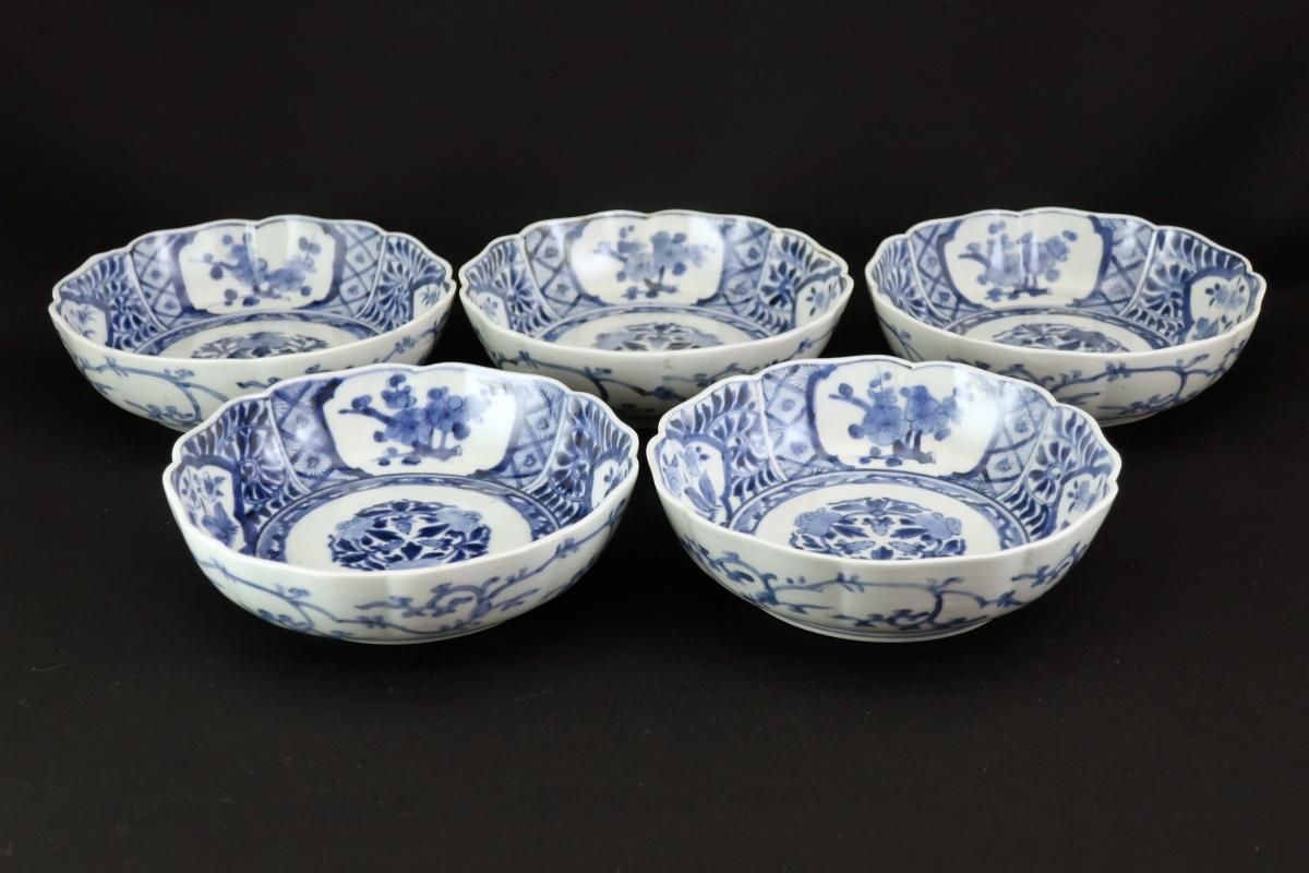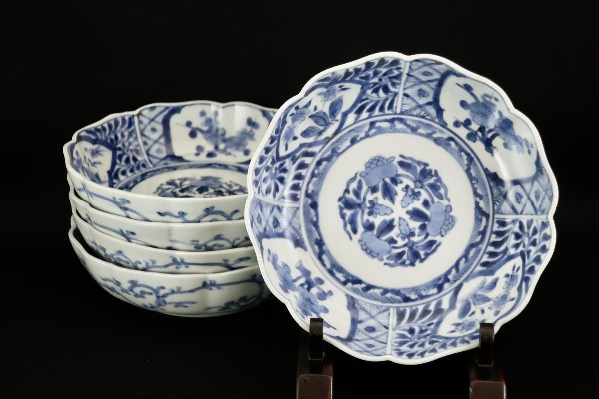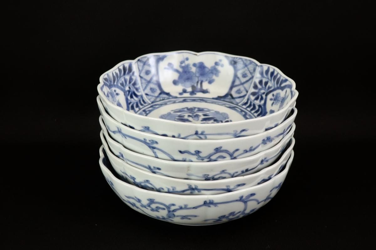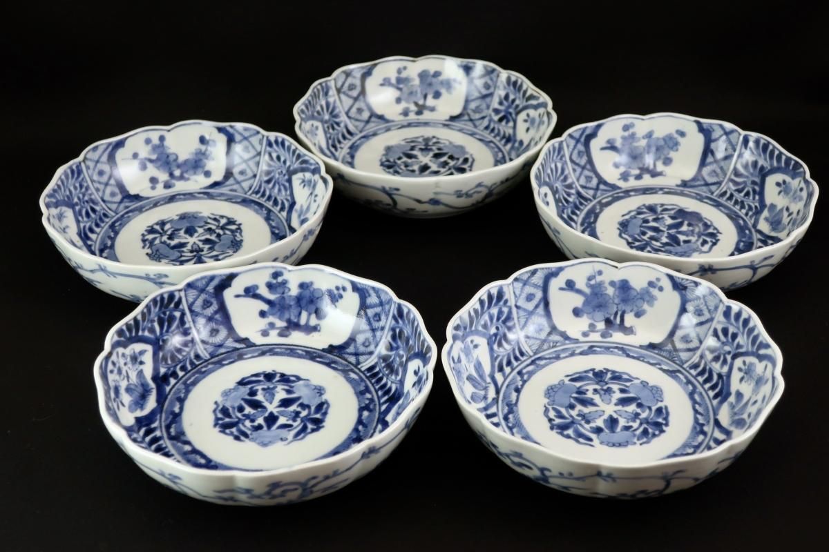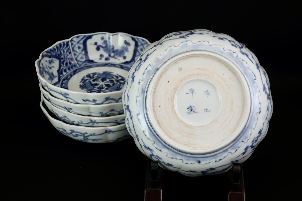 伊万里染付牡丹唐草草花文なます皿 五枚組 / Imari Blue & White 'Namasu' Bowls set of 5