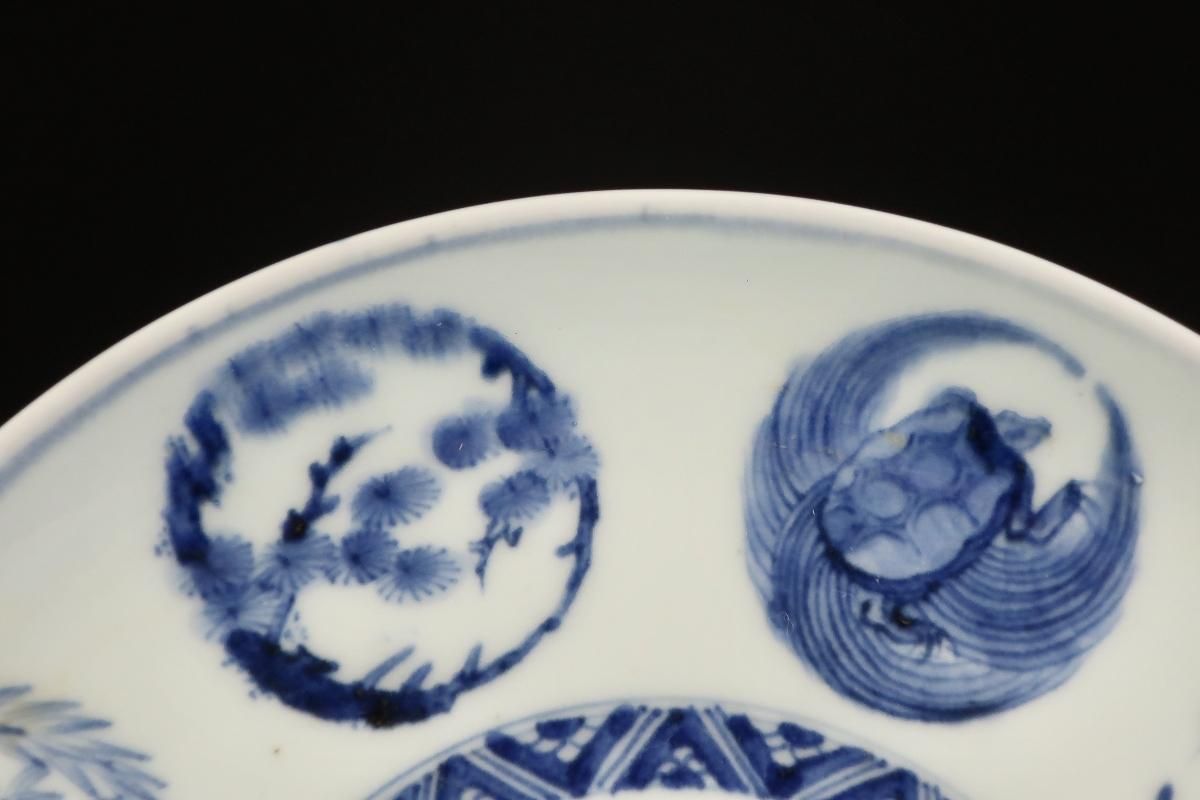 ☆丸文好きの皆様〜♪ 珍しい七寸皿のご紹介です。しかも六枚組!!鶴亀と松竹梅を丸く象って可愛らしい文様になりました。楽しい気分でお食事できそうですね。