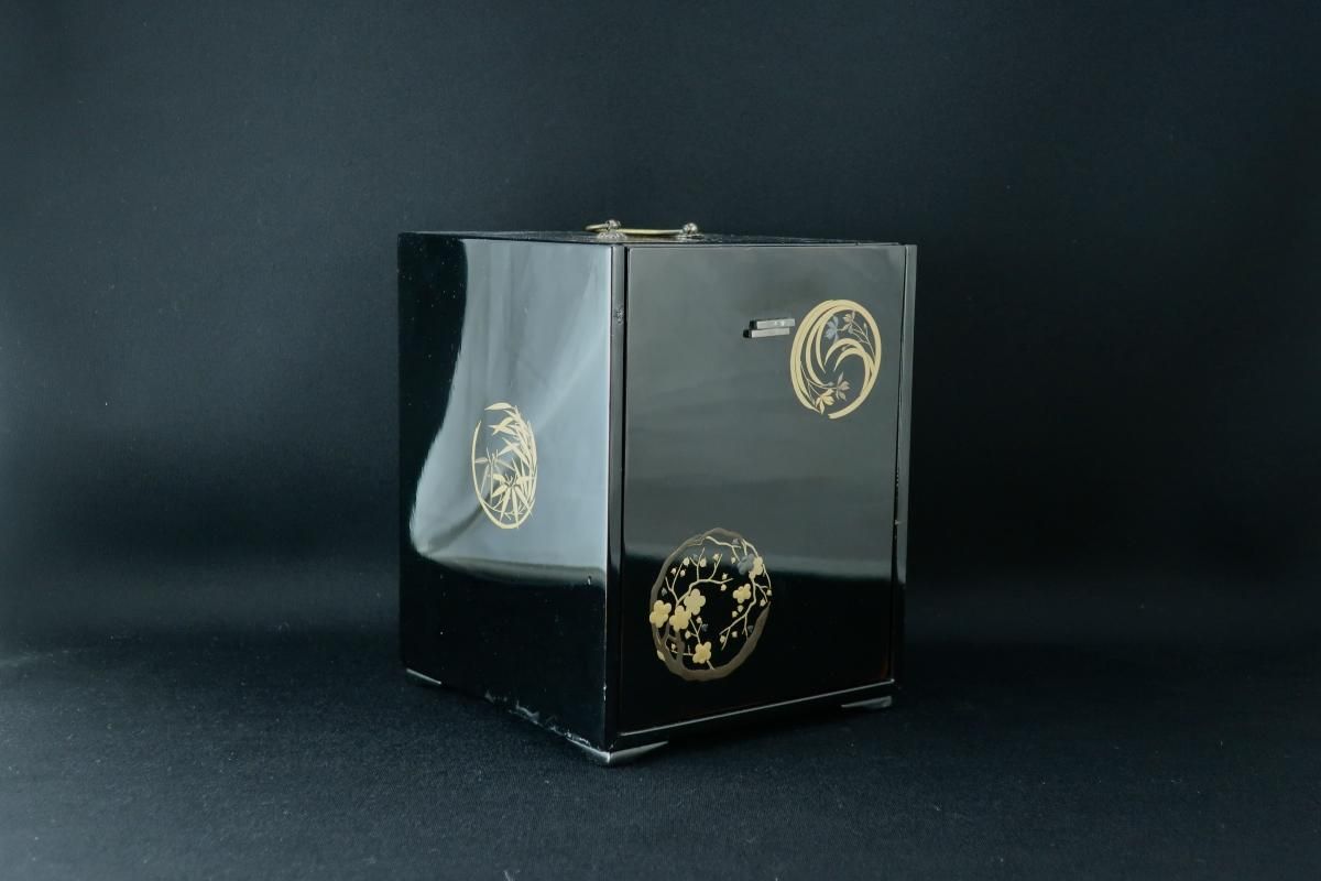 黒塗四君子蒔絵菓子箪笥 / Black-lacquered Sweet Box with Drawers 'Kashi Tansu'