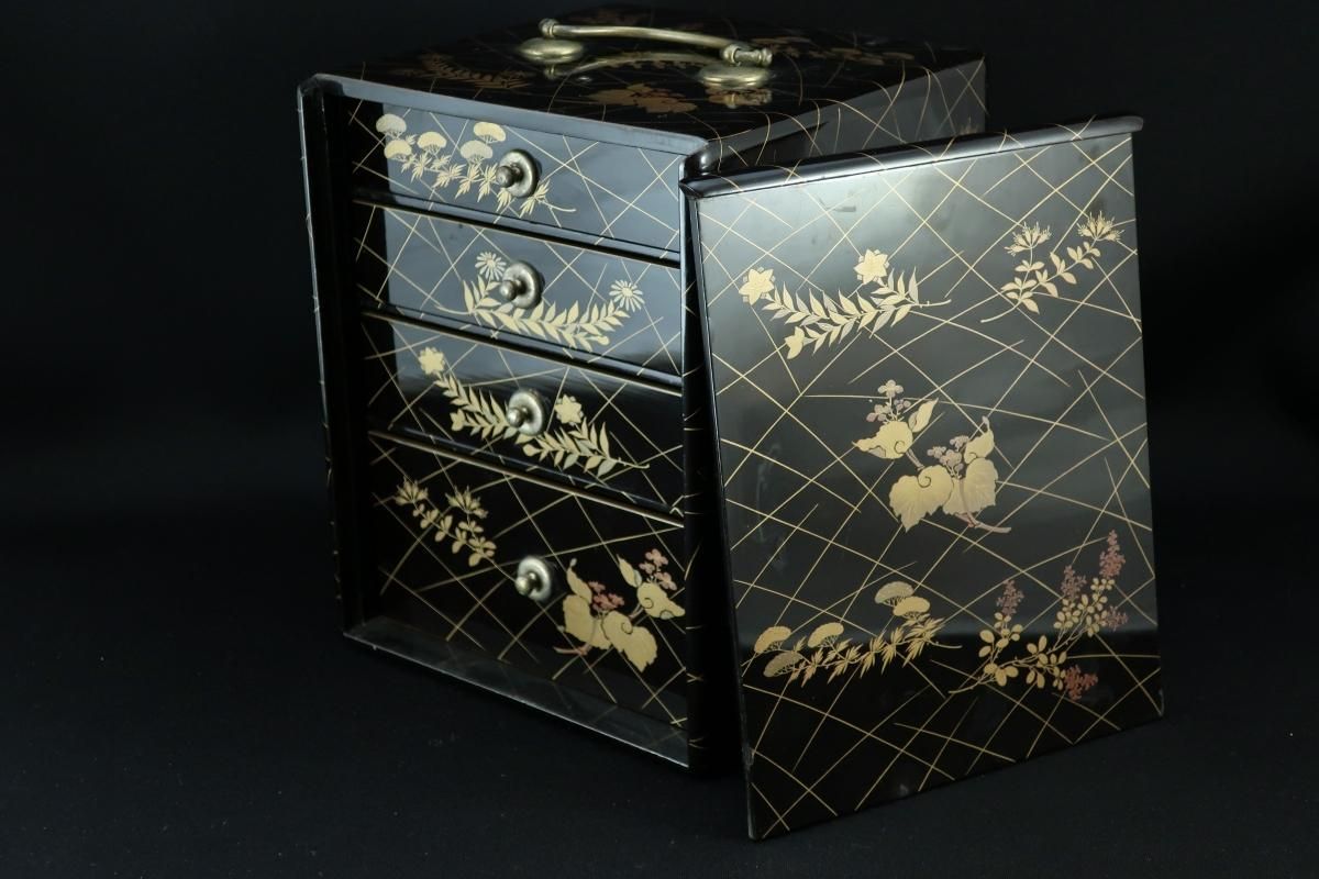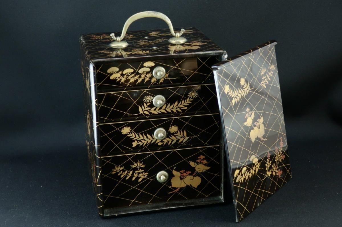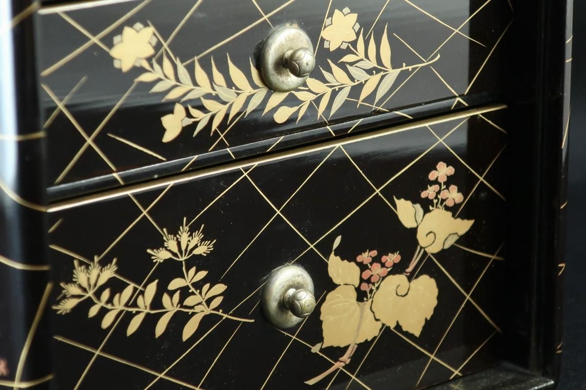 「長野横笛」作 黒塗秋草蒔絵菓子箪笥 / Black-lacquered Tansu for Sweet made by Oteki Nagano
