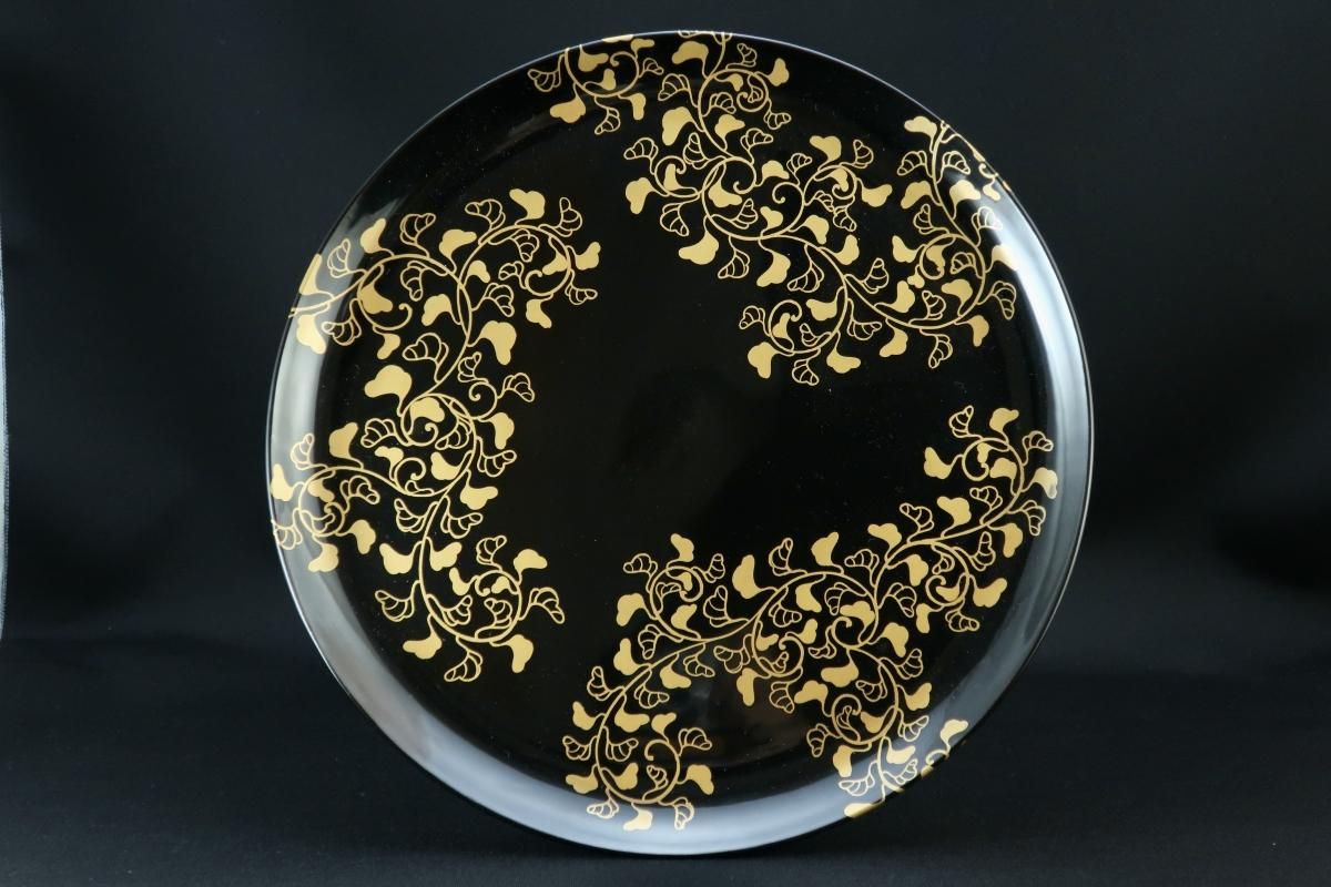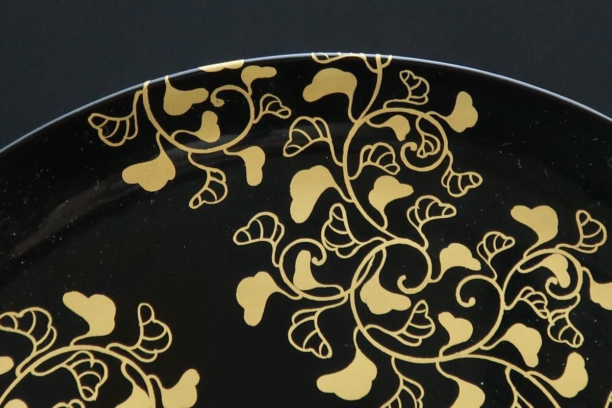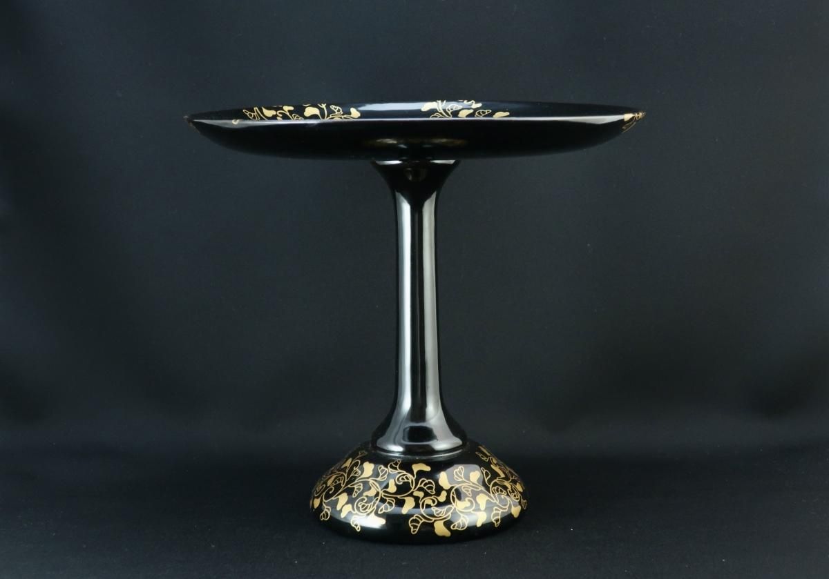 黒塗唐草蒔絵高杯 / Black-lacquered Round Plate with Leg