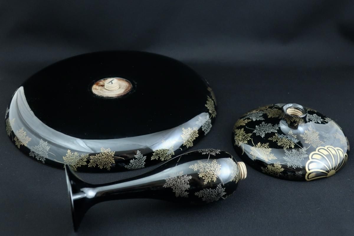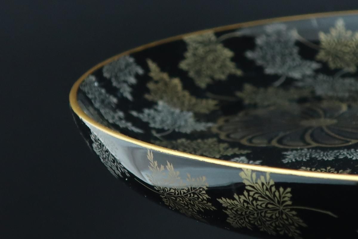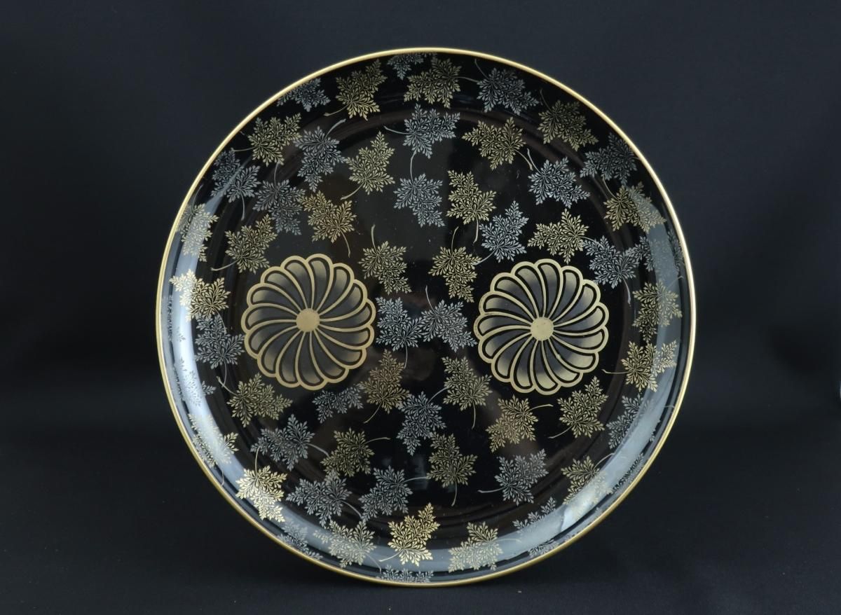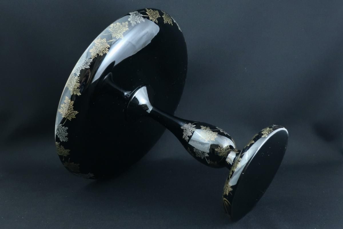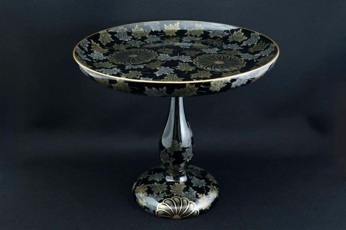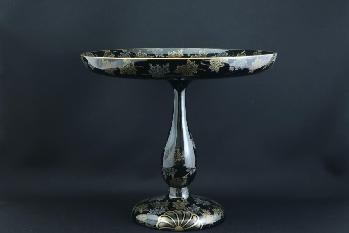 黒塗菊忍金銀蒔絵高杯 / Black-lacquered Round Plate with Leg