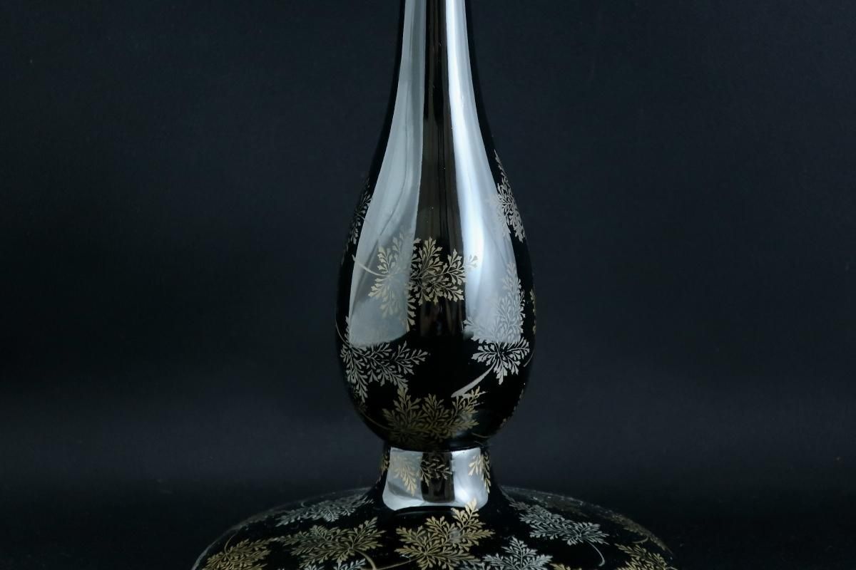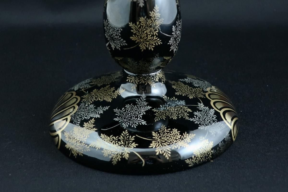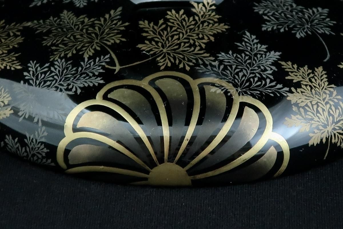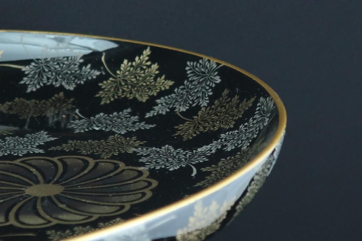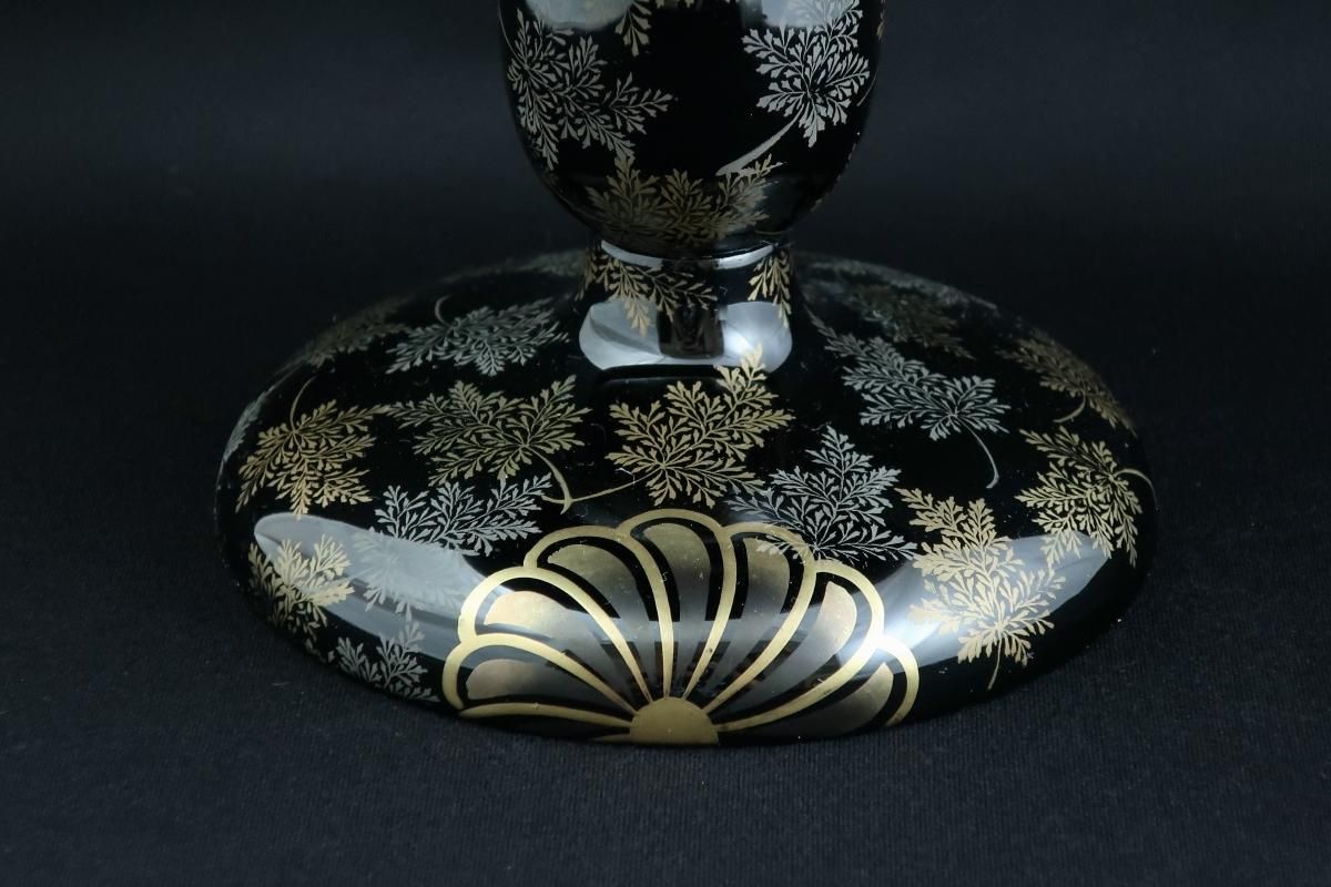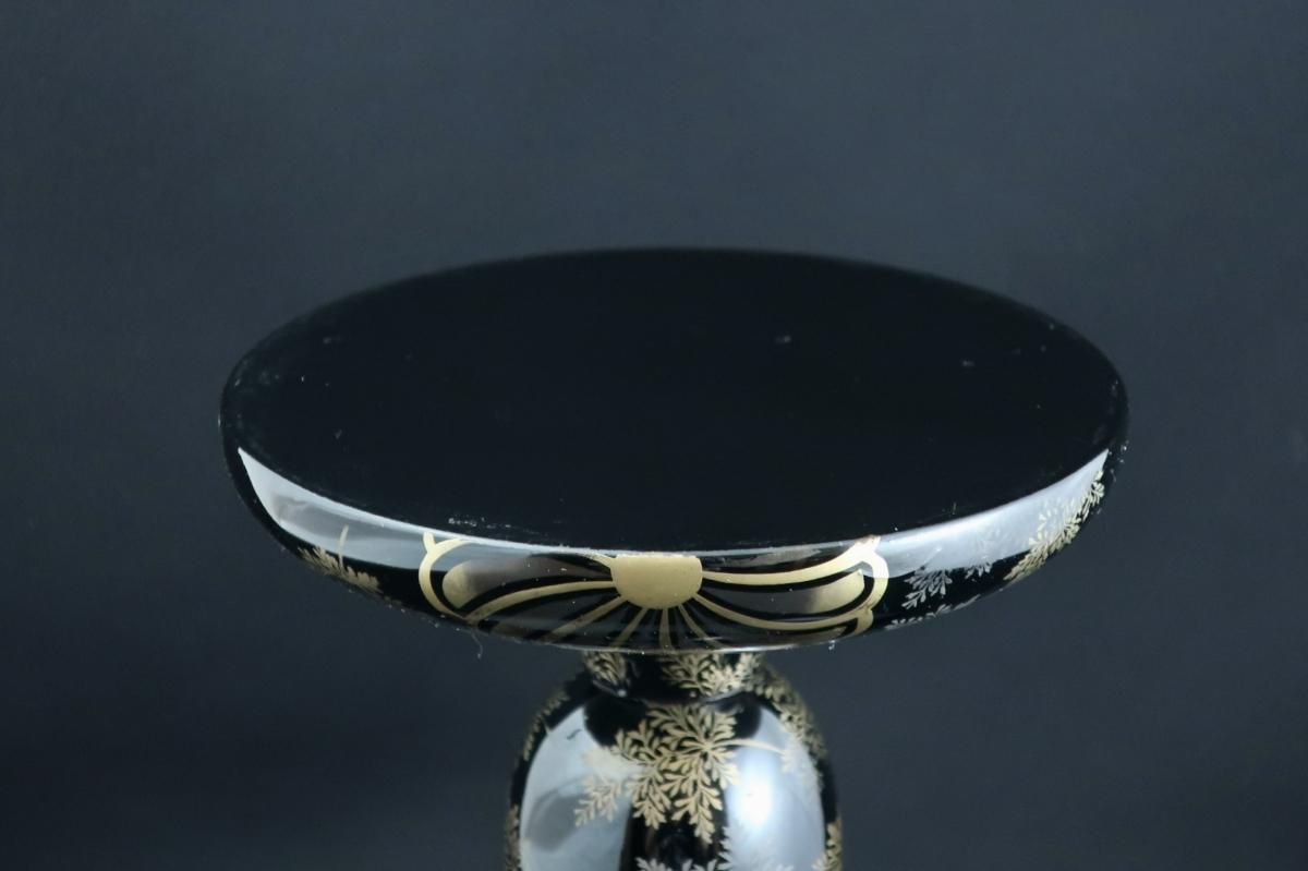 黒塗菊忍金銀蒔絵高杯 / Black-lacquered Round Plate with Leg