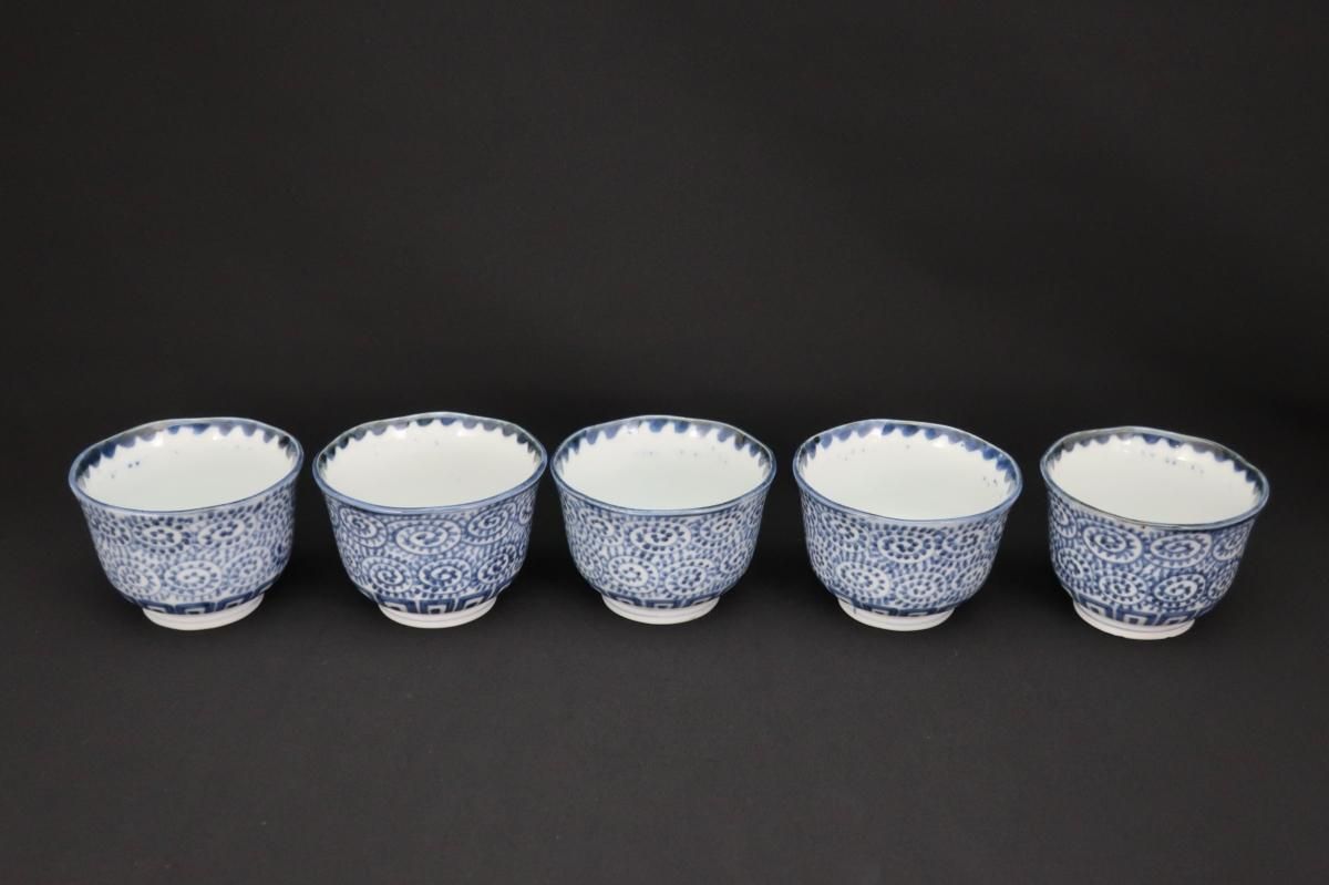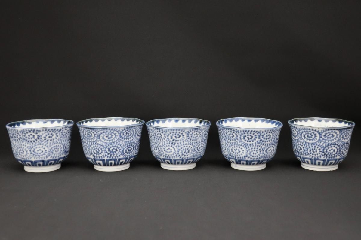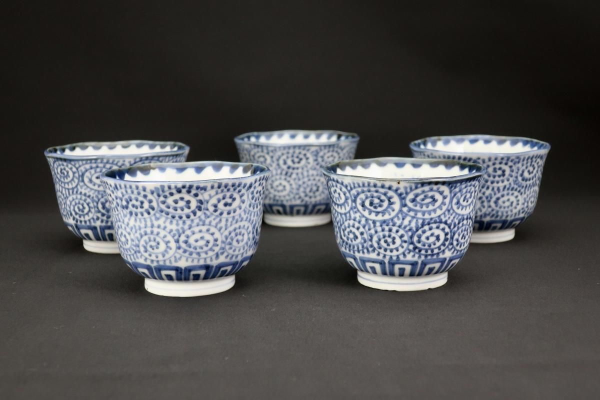 伊万里染付蛸唐草文向付 五客組 / Imari Blue & White 'Mukoduke' Cups with the pattern of