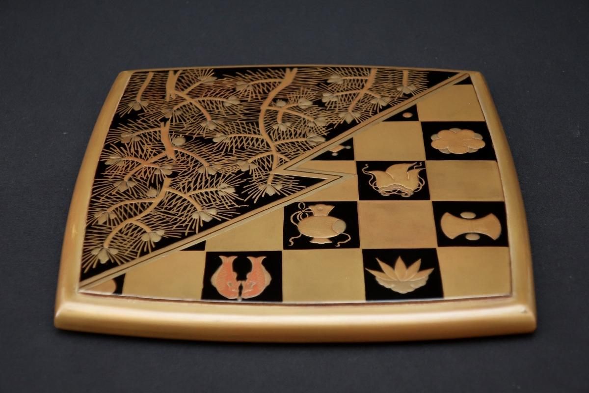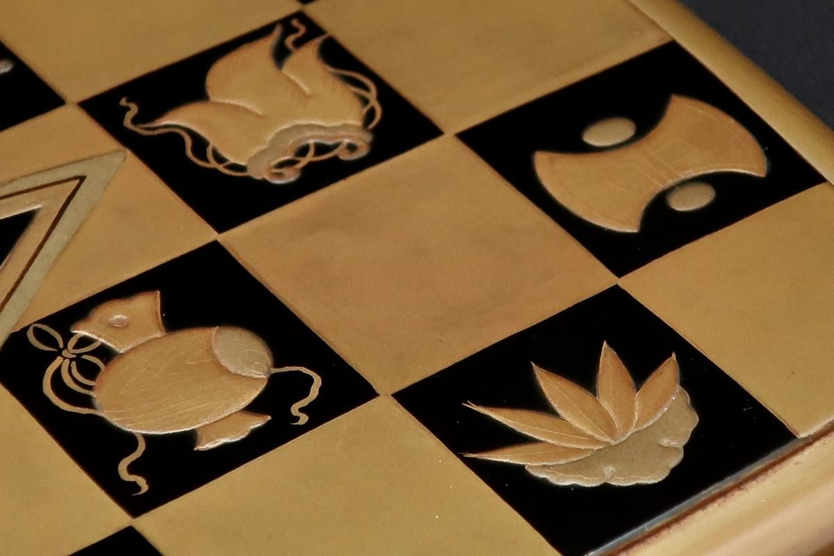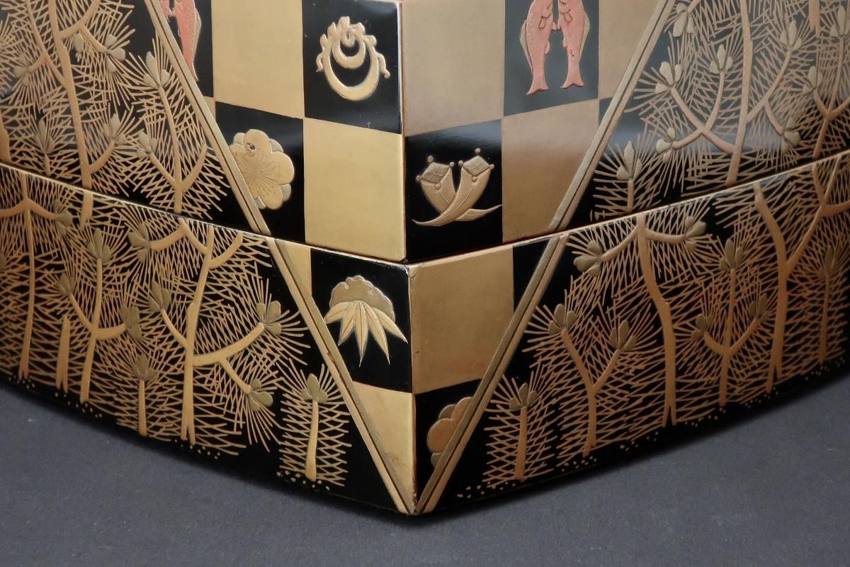 吉祥文市松松蒔絵六寸重箱 / Black & Gold-lacquered 'Jubako' Food Boxes
