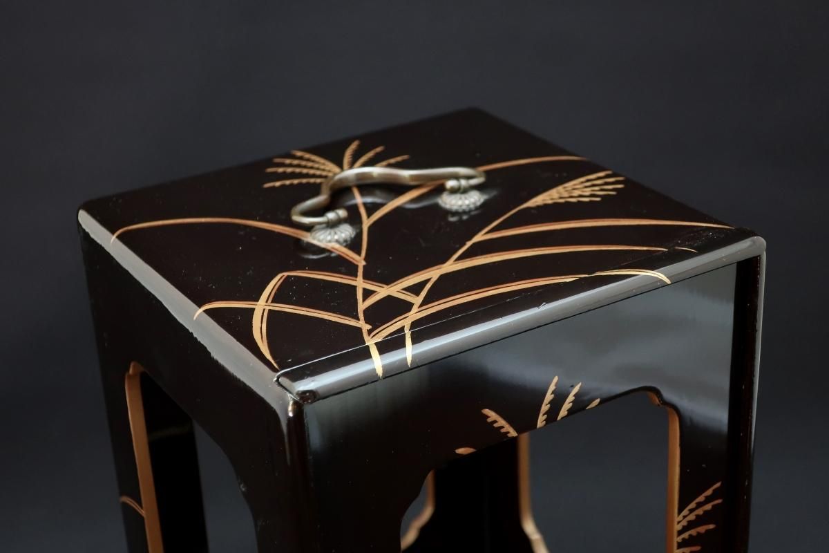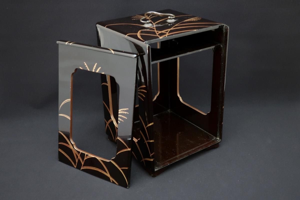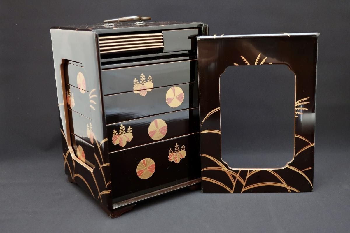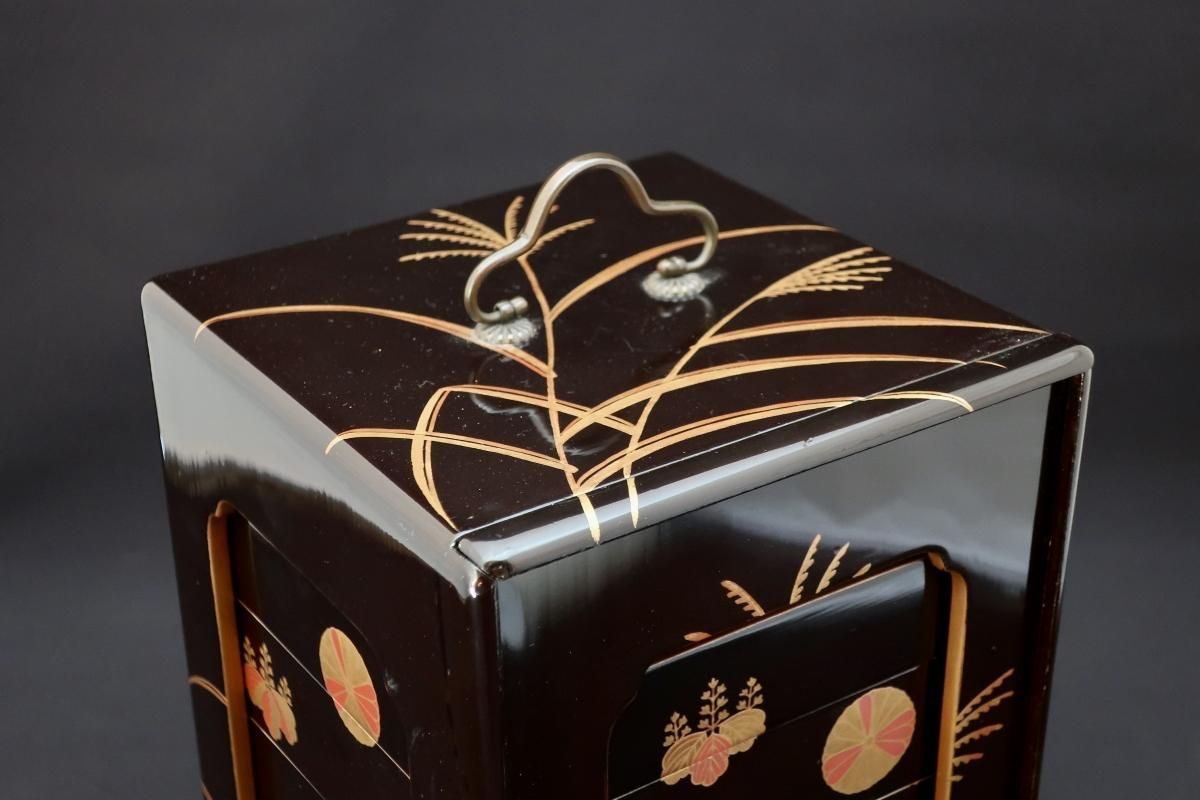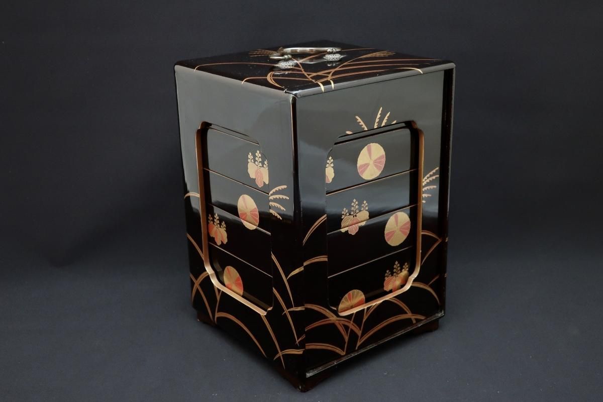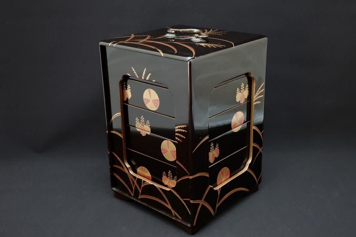 黒塗菊桐芒蒔絵提重 / Black-lacquered Food Boxes with Plates