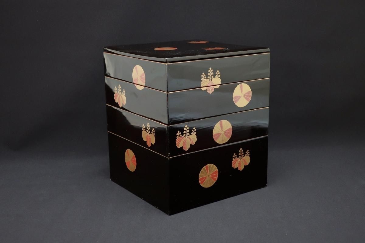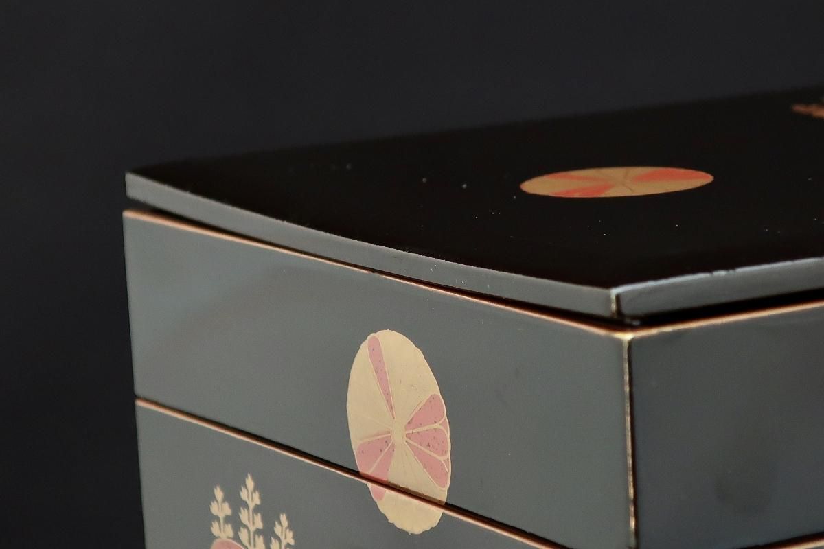 ☆重箱の蓋に若干の反りが見られます。また、箱のした部分に亀裂が1箇所あります。画像にてご確認下さい。
