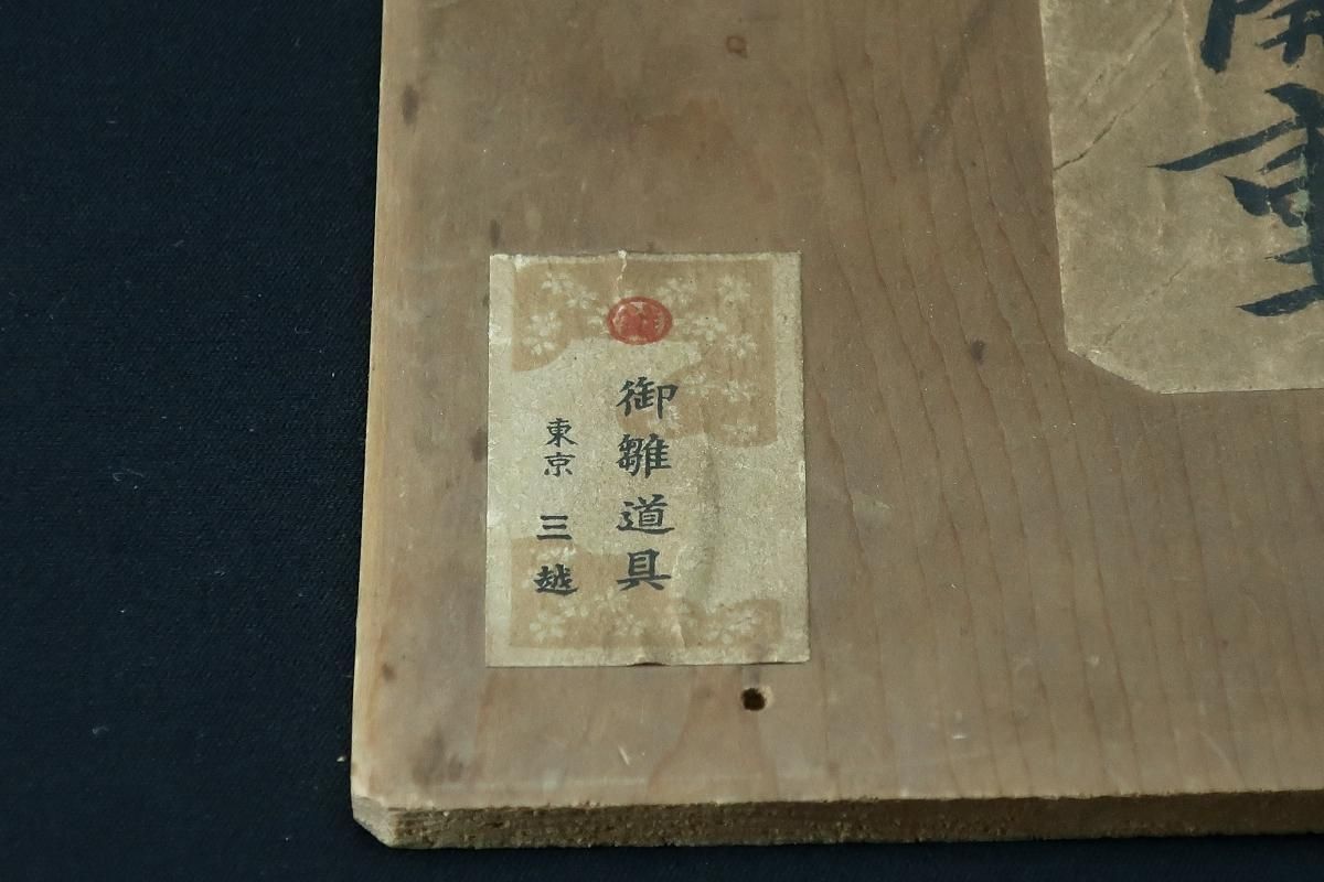 ☆ピッタリと入る木箱ですし、タイトルからオリジナルの箱かと思われますが、三越「御雛道具」とあります。昔の雛人形ではかなり大きなものもあったのでこんな道具も想像出来ますが、もしかしたら雛祭用で使われた菓子器だったのかもしれません。