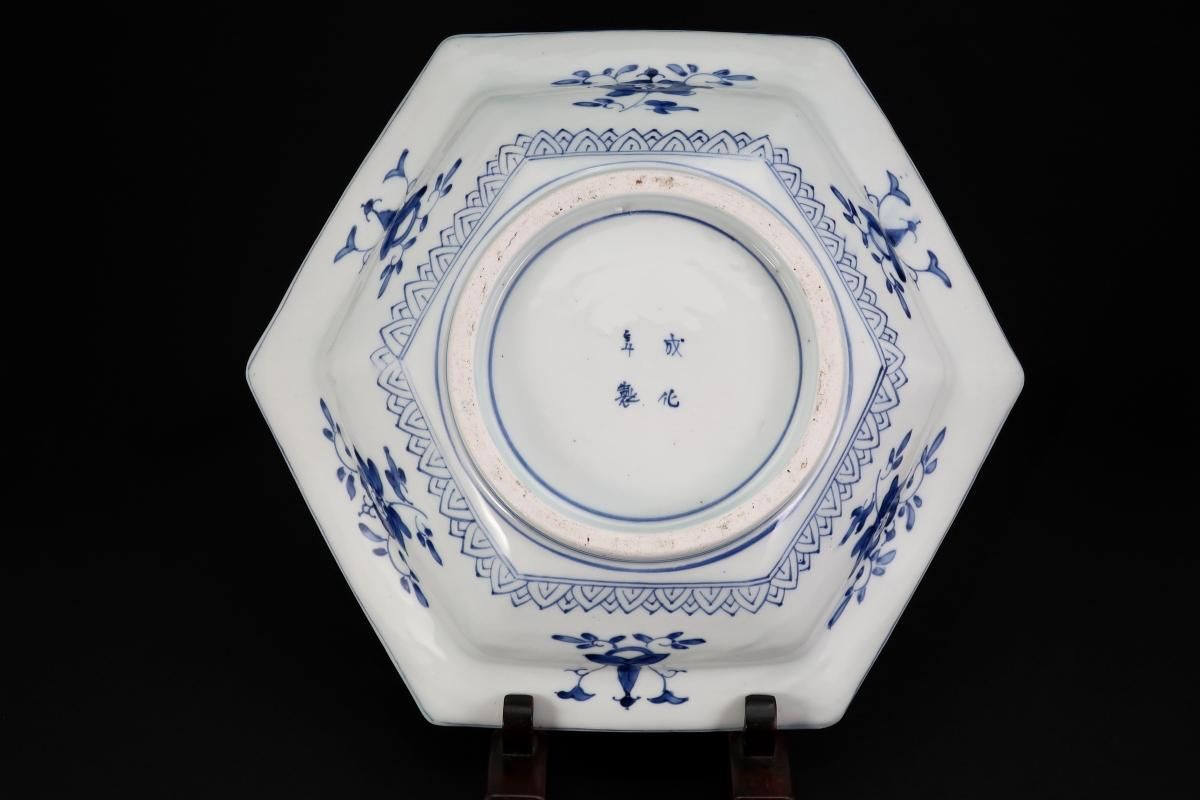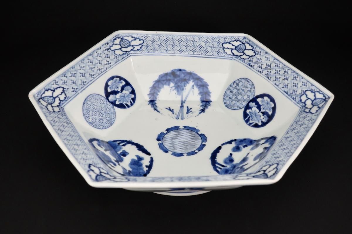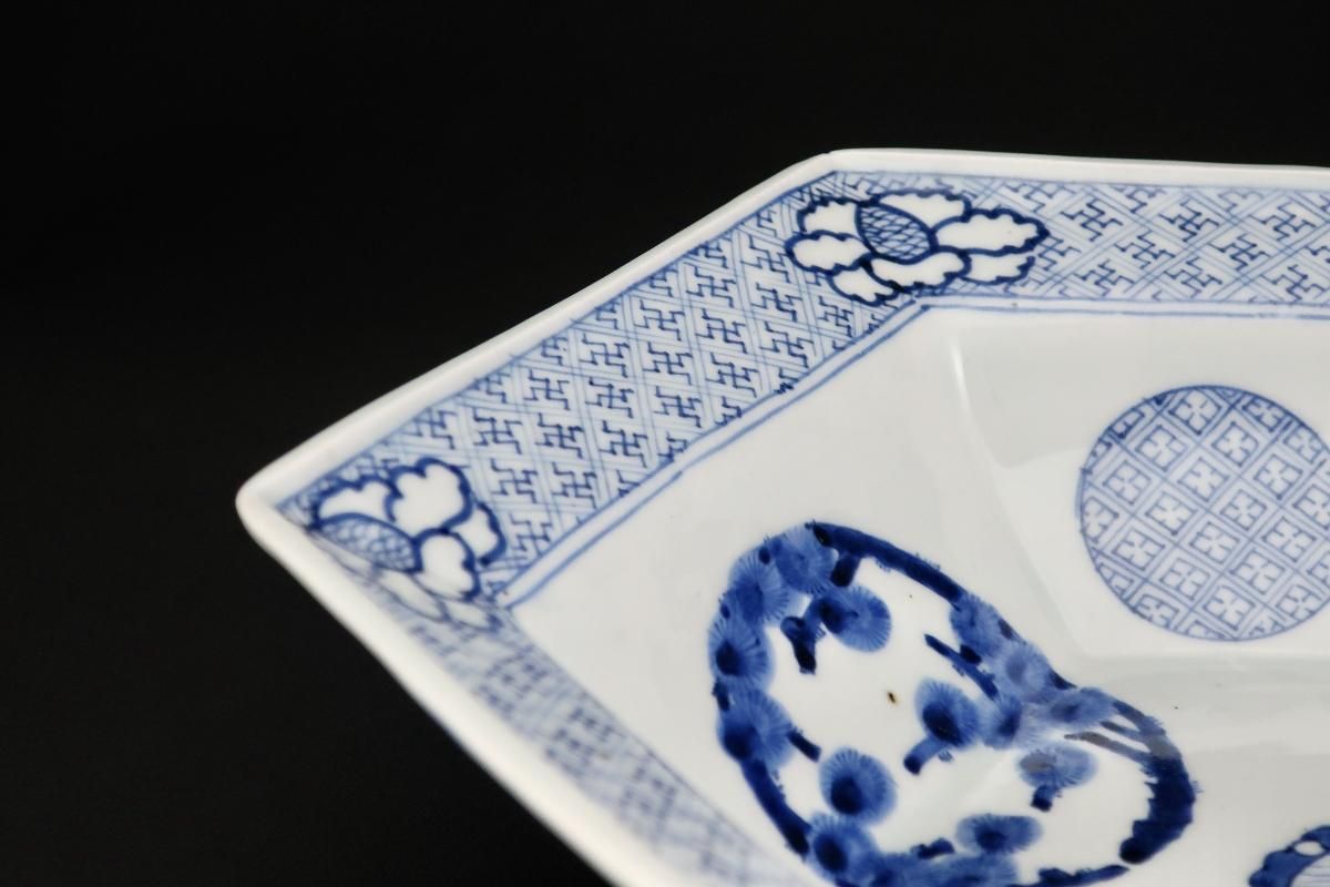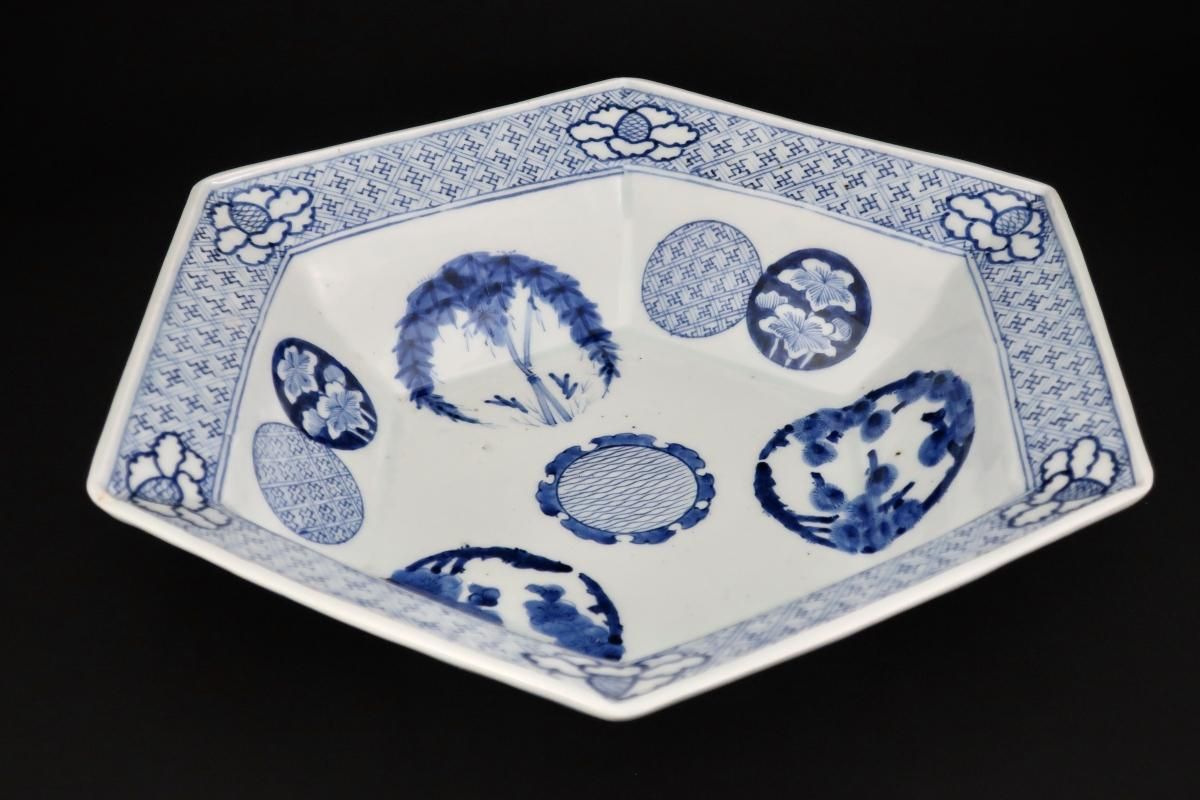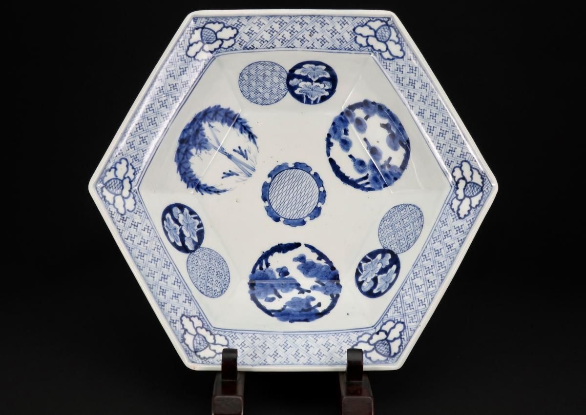 伊万里染付松竹梅丸文六角大鉢 / Imari Large Hexagonal Blue & White Bowl with the pattern of Circles