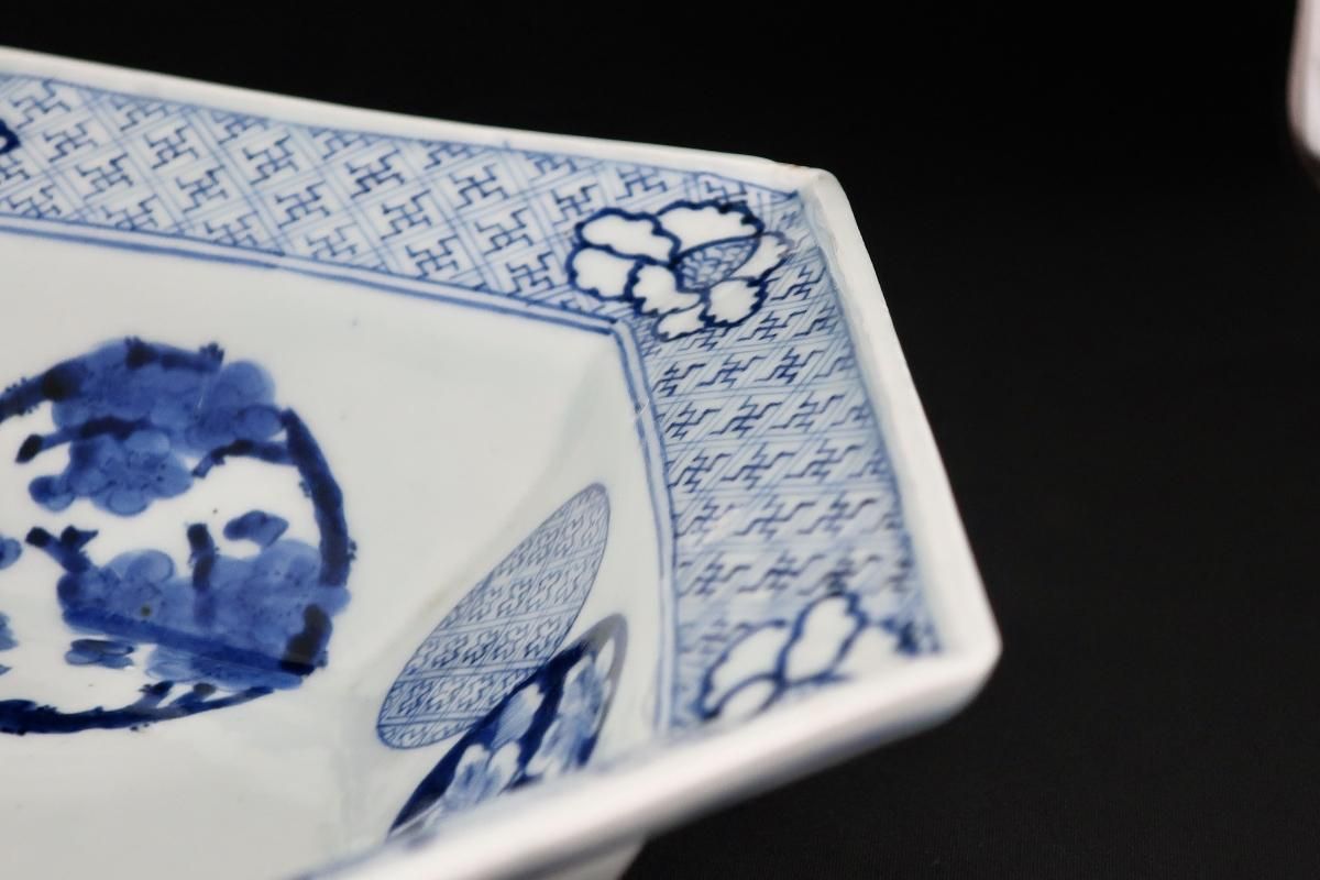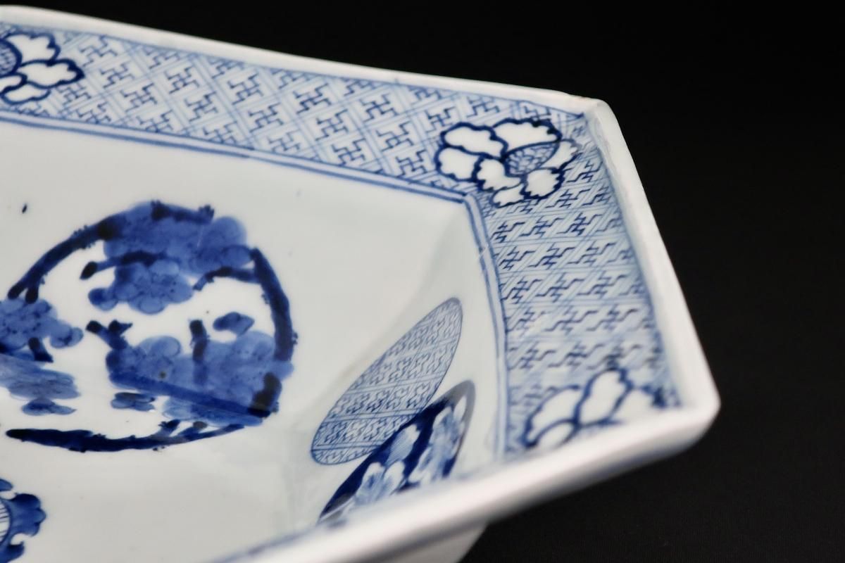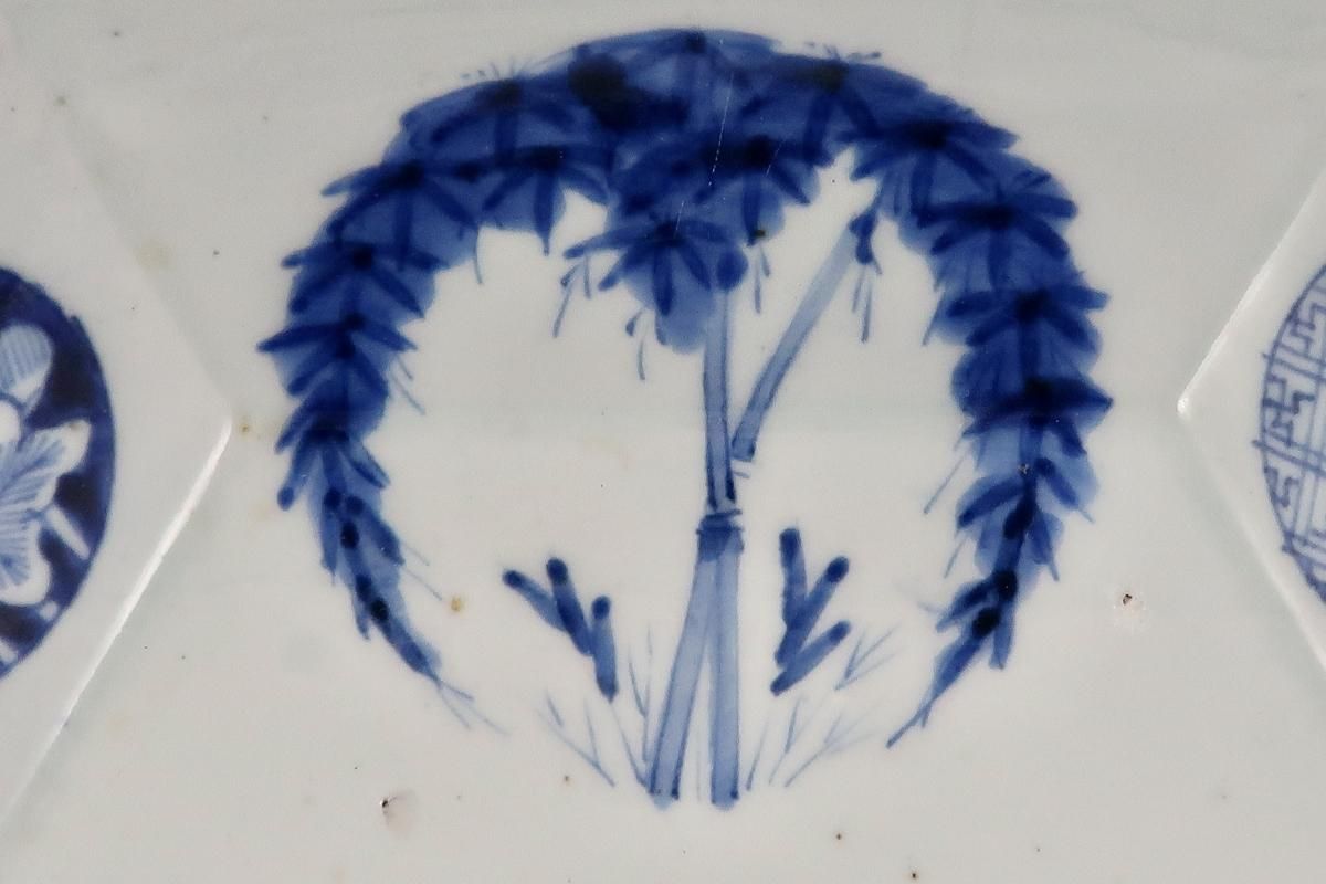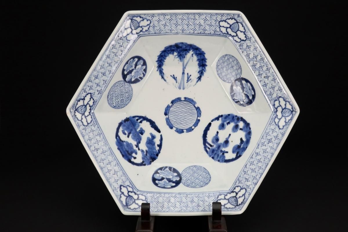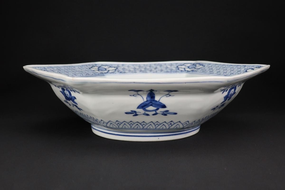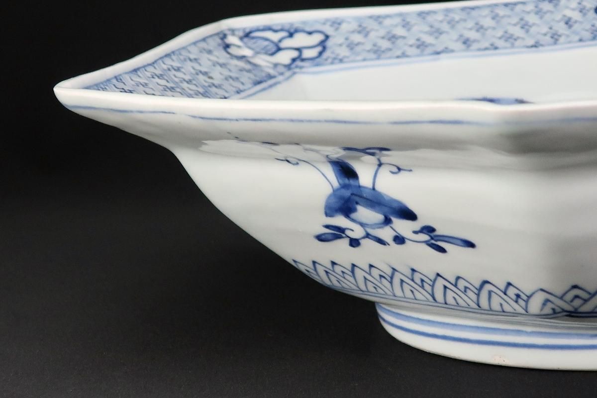 伊万里染付松竹梅丸文六角大鉢 / Imari Large Hexagonal Blue & White Bowl with the pattern of Circles