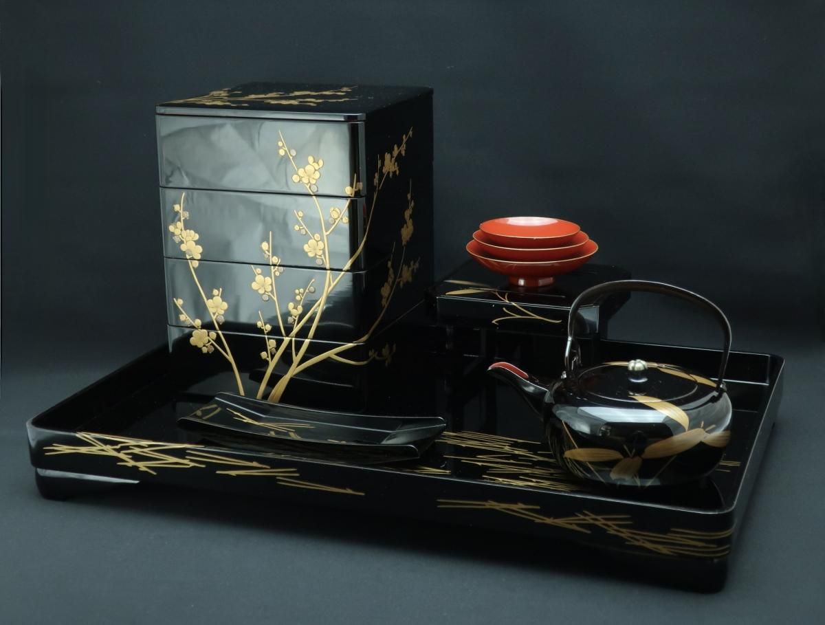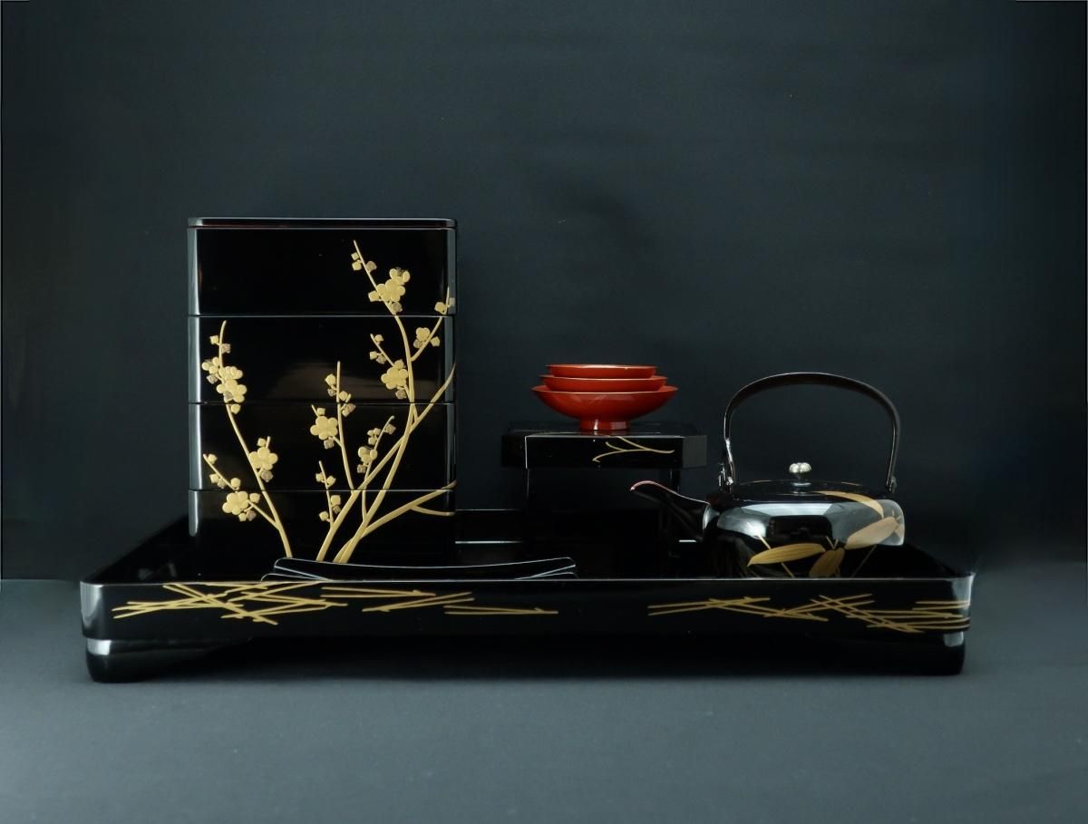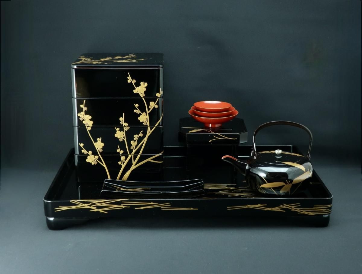 黒塗松竹梅蒔絵屠蘇器 / Black-lacquered New Year Sake Set