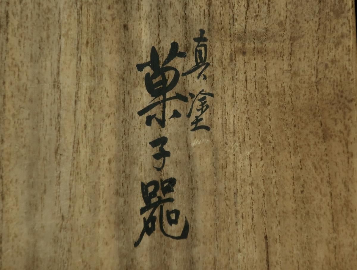 ☆ほんのりピンクが可愛らしい脚付の菓子器。箱には時代を感じますが、状態がとても綺麗。表面の梅の蒔絵も綺麗ですが、裏底の梨地にも仕事の丁寧さが伺えます。加賀漆芸の名工、 鶴田信斎( 二代 和三郎 1866‐1942)の作品を春の訪れと共にお楽しみください。