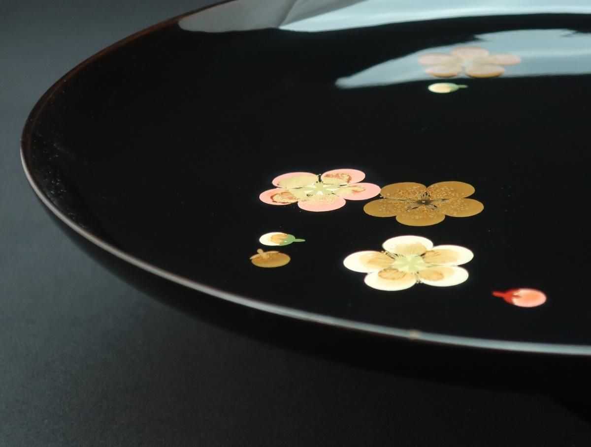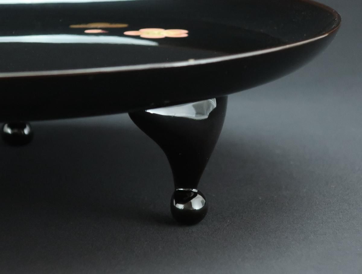 真塗脚付梅蒔絵菓子器 / Black-lacquered Sweet Plate with Legs
