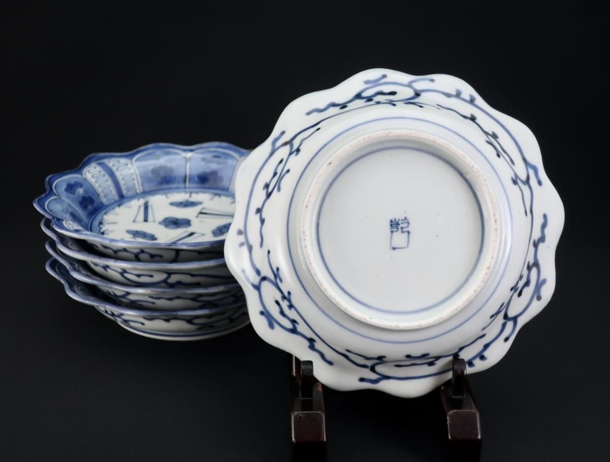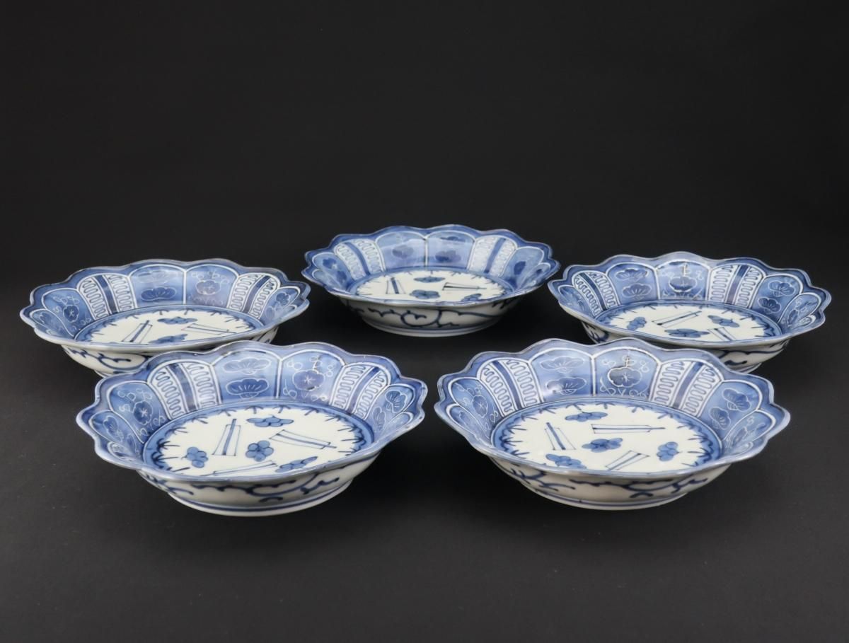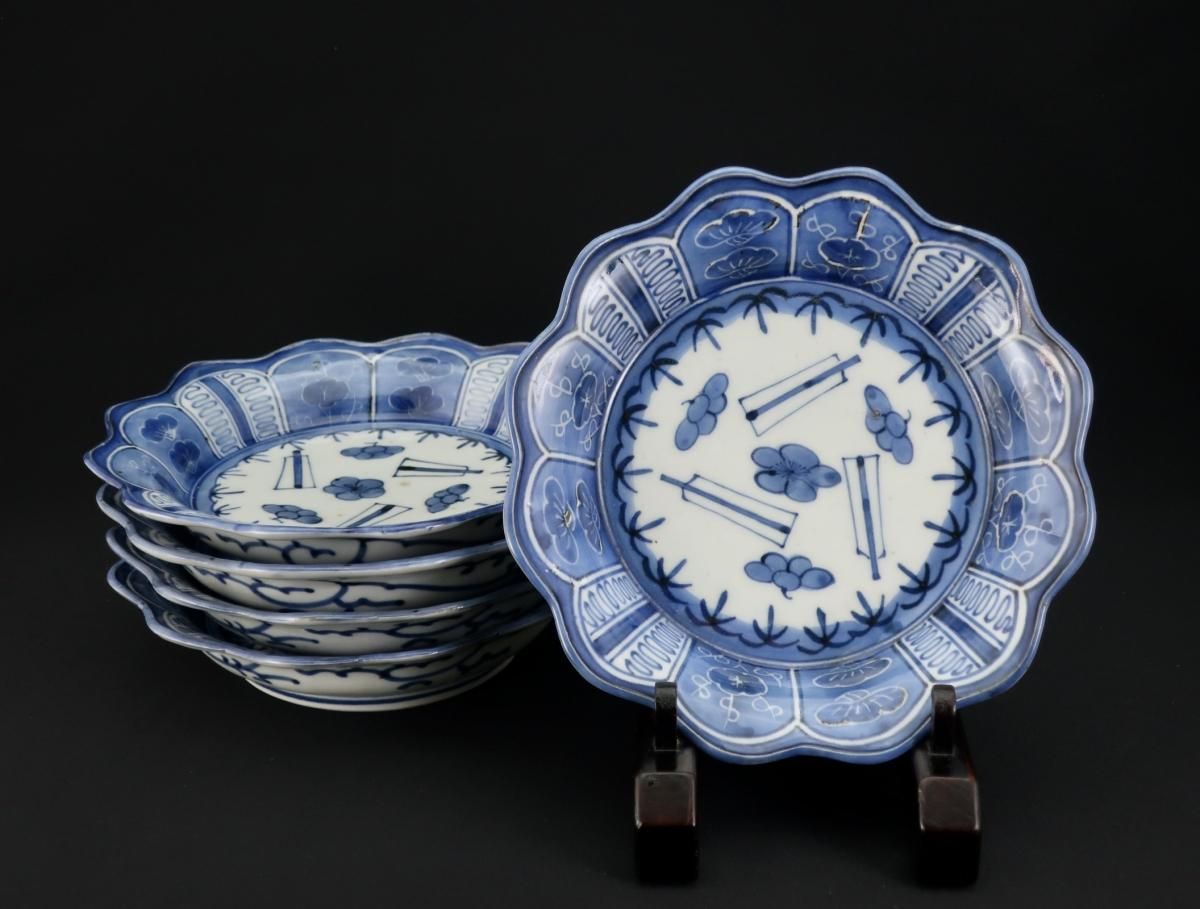 伊万里染付松竹梅文輪花形皿 五枚組 / Imari Blue & White Flower-shaped Plates set of 5