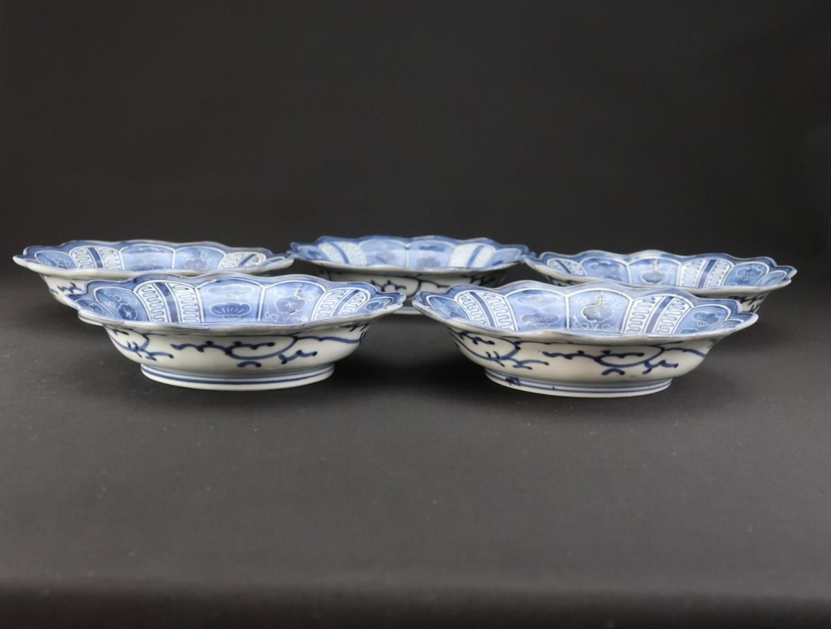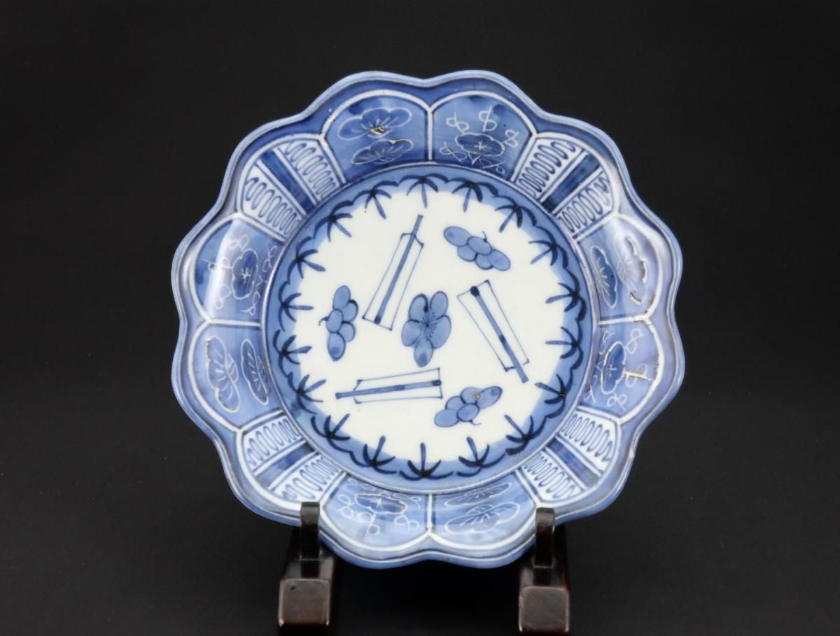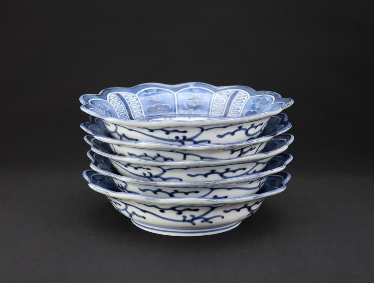 伊万里染付松竹梅文輪花形皿 五枚組 / Imari Blue & White Flower-shaped Plates set of 5
