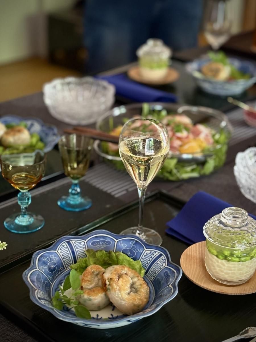 ☆松竹梅をポップな感じで表現した花の形の染付皿。大なますと呼ぶにはややフラットな形なのでパスタ等も似合いそう。珍しいこんなお皿はなかなかお目にかかれません。ピピっときたら是非お求めください🎵