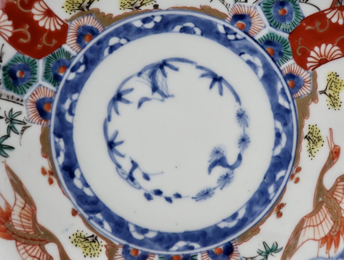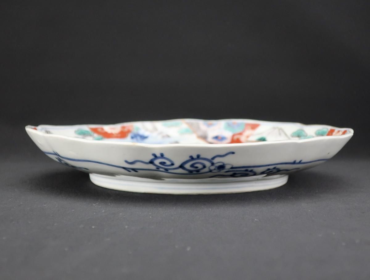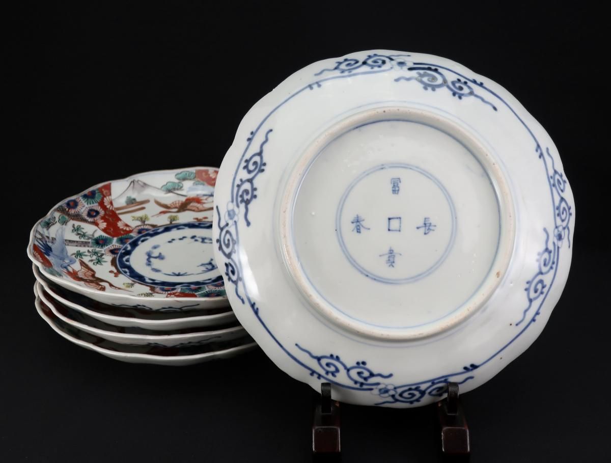 伊万里色絵富士山と鶴の図八寸皿 五枚組 / Imari Polychrome Plates with the picture of Mt. Fuji & Cranes set of 5