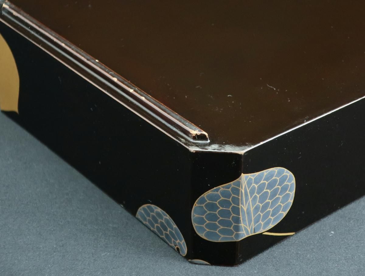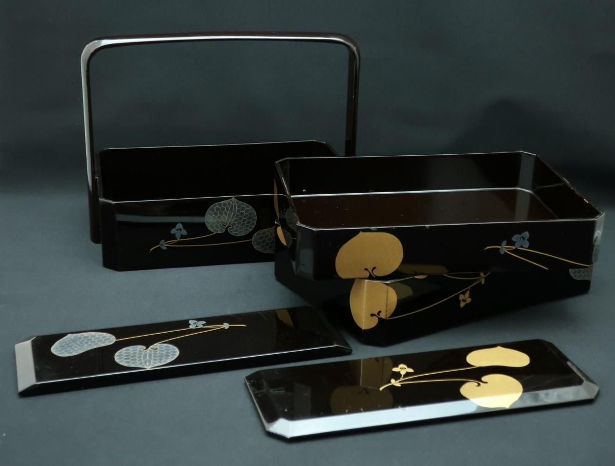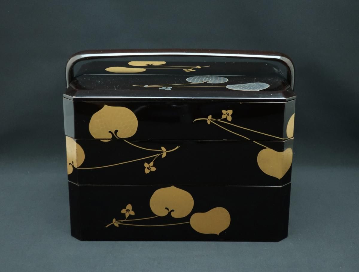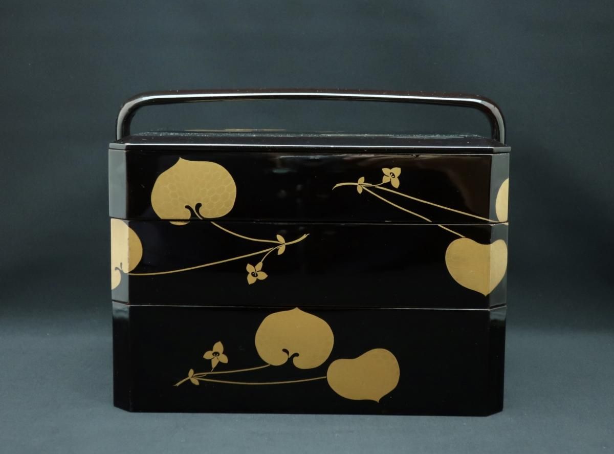 黒塗葵蒔絵手提重 / Black-lacquered 'Jubako' Food Boxes with the Handle