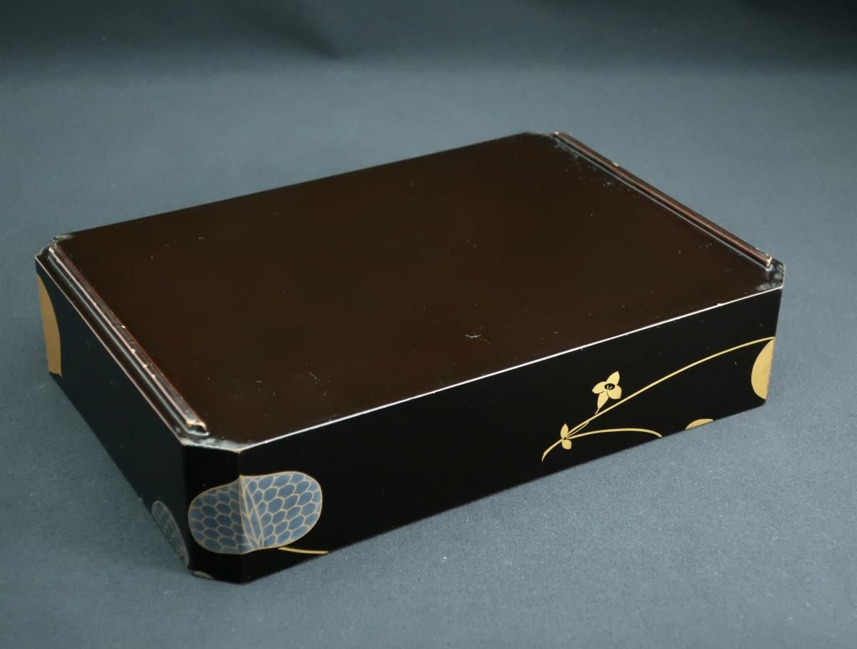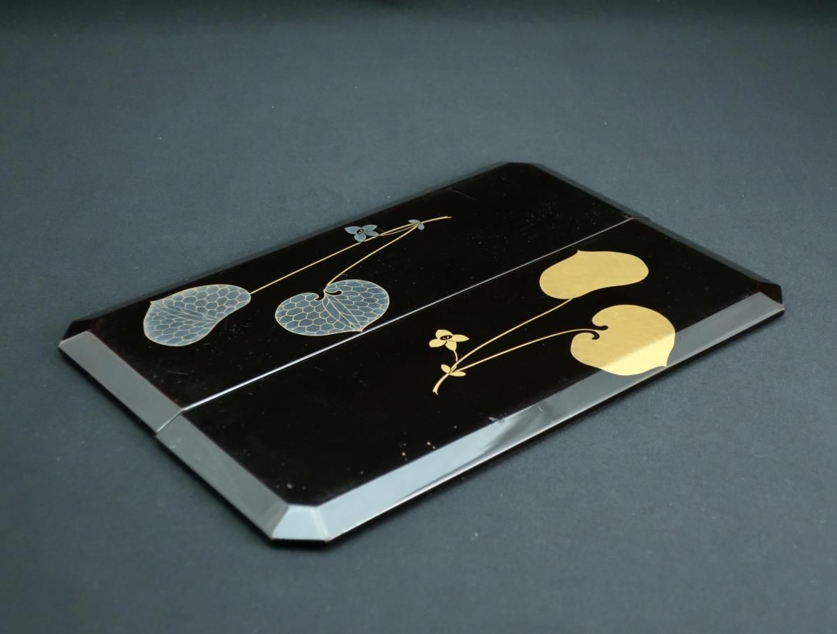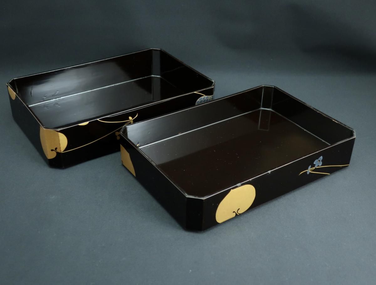 黒塗葵蒔絵手提重 / Black-lacquered 'Jubako' Food Boxes with the Handle