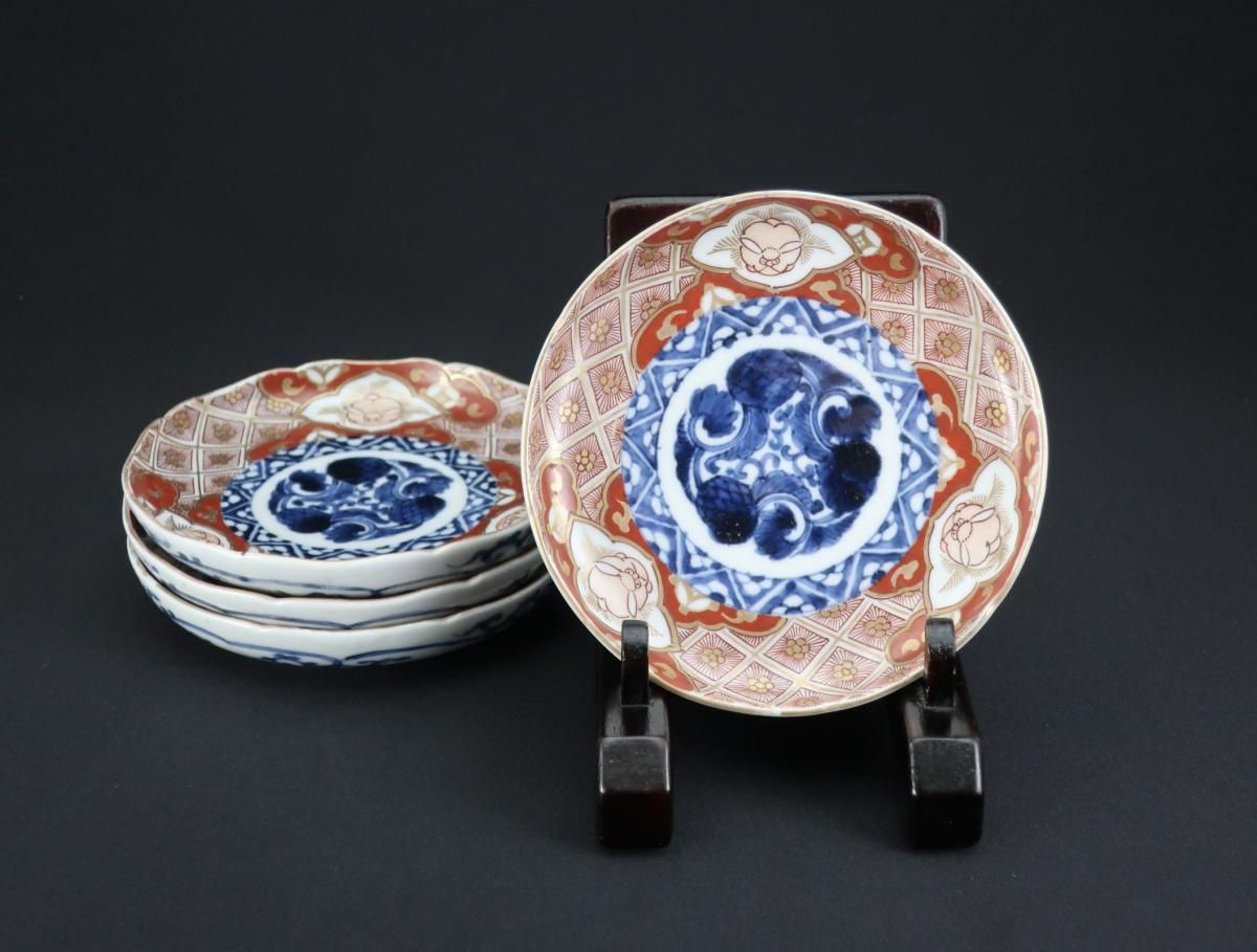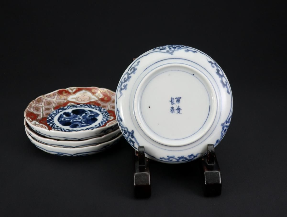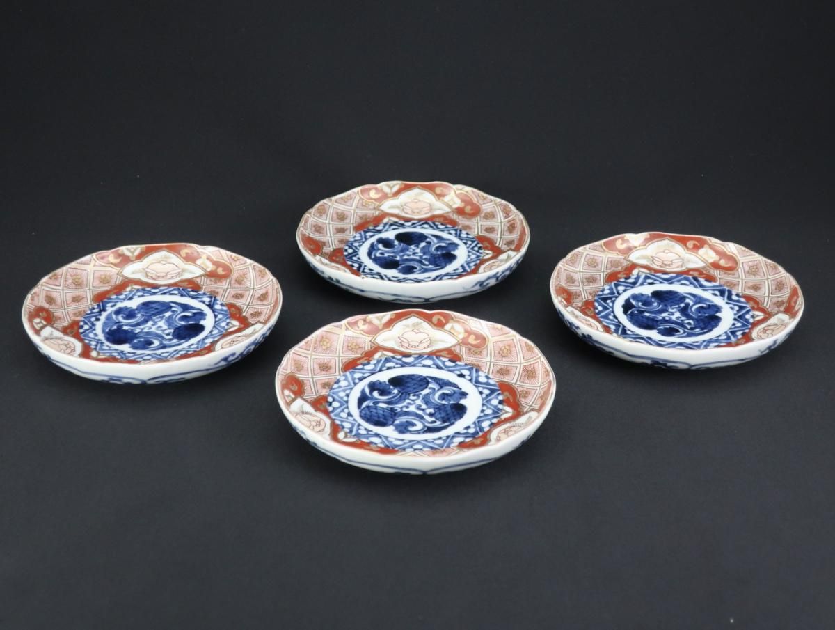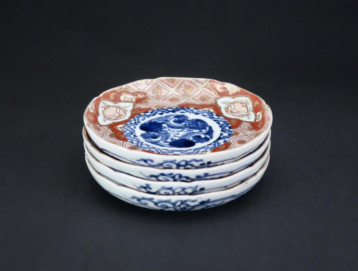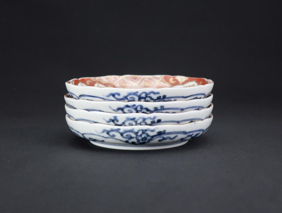 大聖寺伊万里赤絵兎文四寸皿 四枚組 / Imari Small Polychrome Plates with the picture of Rabbits set of 4