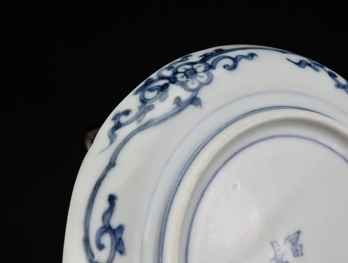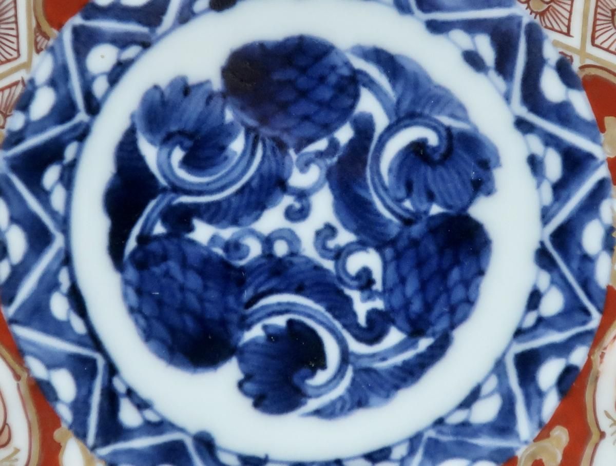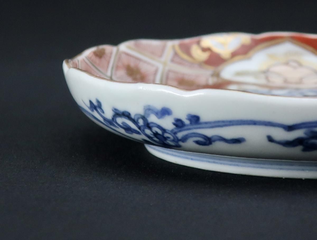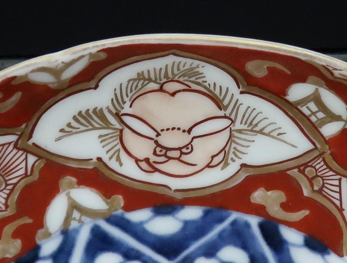 ☆わんぱくでちょっと気の強そうな兎の表情がユニークな大聖寺伊万里のお皿。見込みは葵か松毬か??鮮やかな赤絵と深い呉須の色がとても綺麗でピンクの兎がポイントになっています。