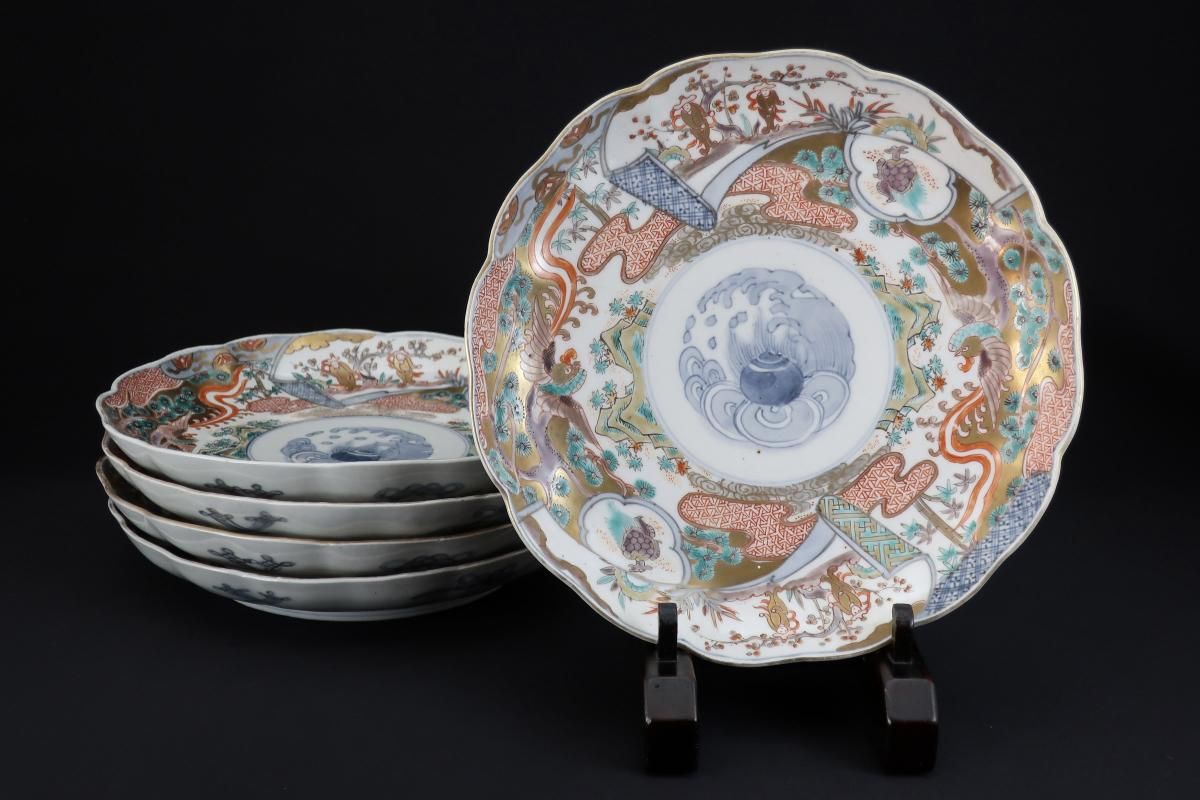 伊万里色絵鳳凰松竹梅文七寸皿 五枚組 / Imari Polychrome Plates with the picture of Phoenixes set of 5