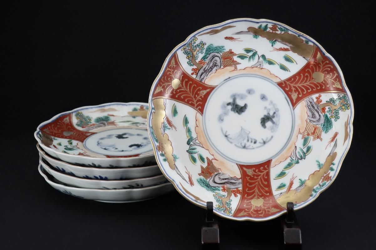 伊万里色絵山水文七寸皿 五枚組 / Imari Polychrome Plates set of 5