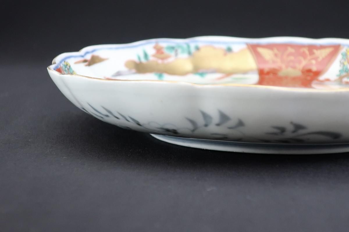 ☆穏やかな風景と煌びやかな赤絵と金彩の対比が面白い絵付けの七寸皿。料理を盛り付けたらもっとピシッと引き締まりそう。ちょっとモダンな印象もあるので、ガラスやクリスタルと一緒に洋の食卓でも楽しめそうです。