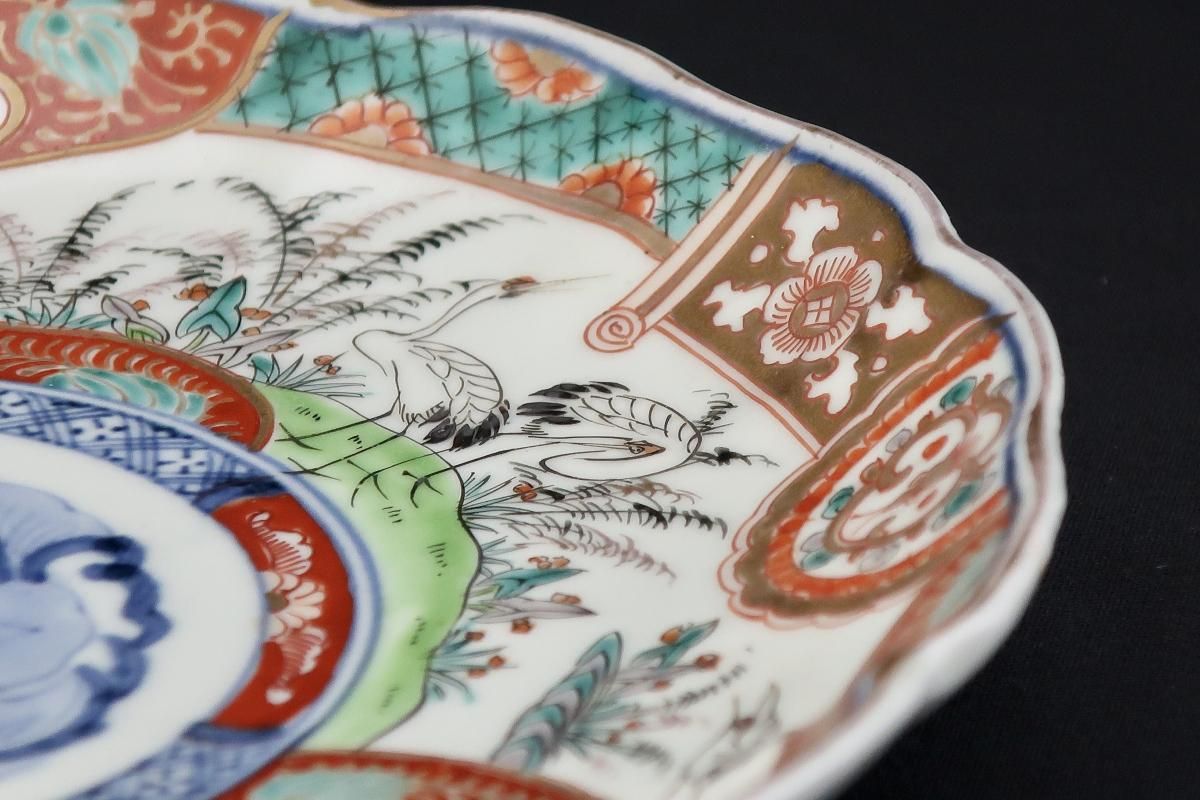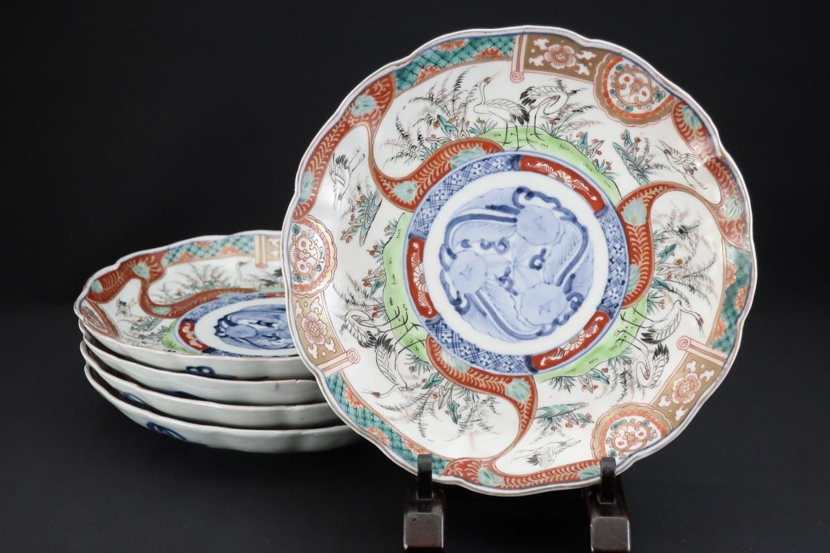 伊万里色絵澤瀉鶴文七寸皿 五枚組 / Imari Polychrome Plates with the picture of Cranes set of 5