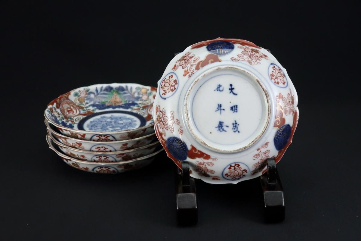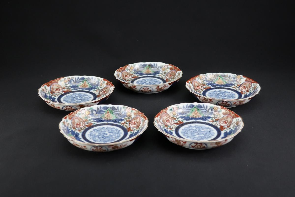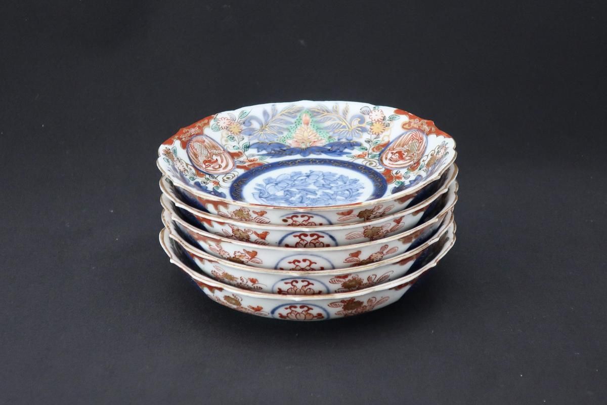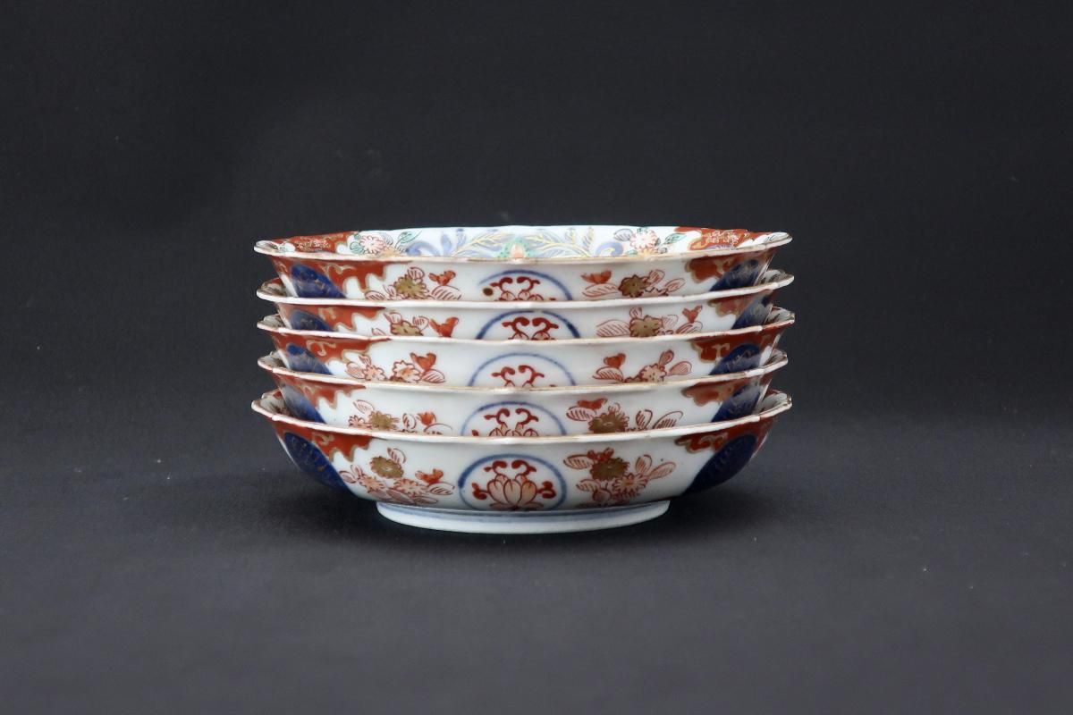 大聖寺伊万里色絵花鳥文四寸皿 五枚組 / Imari Small Polychrome Plates set of 5