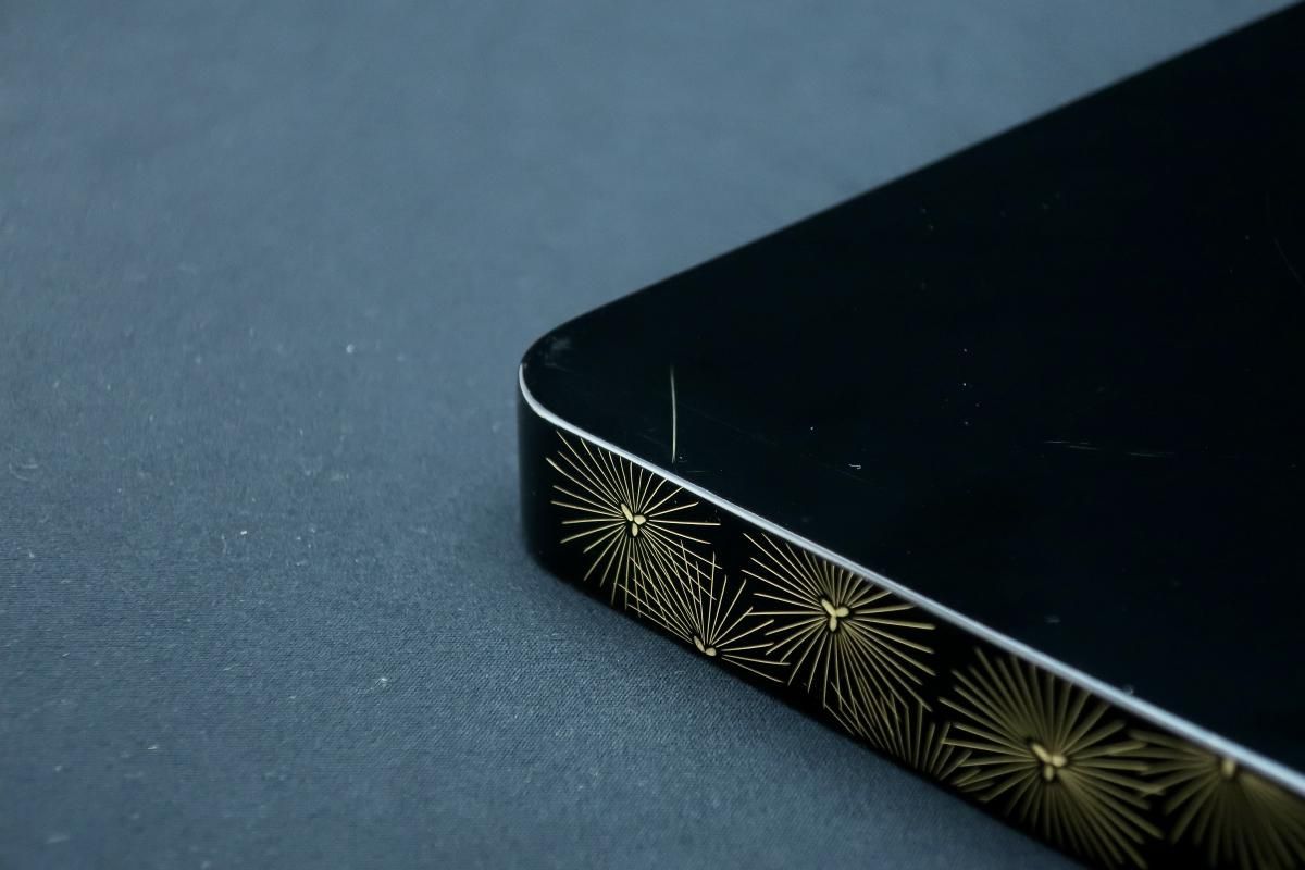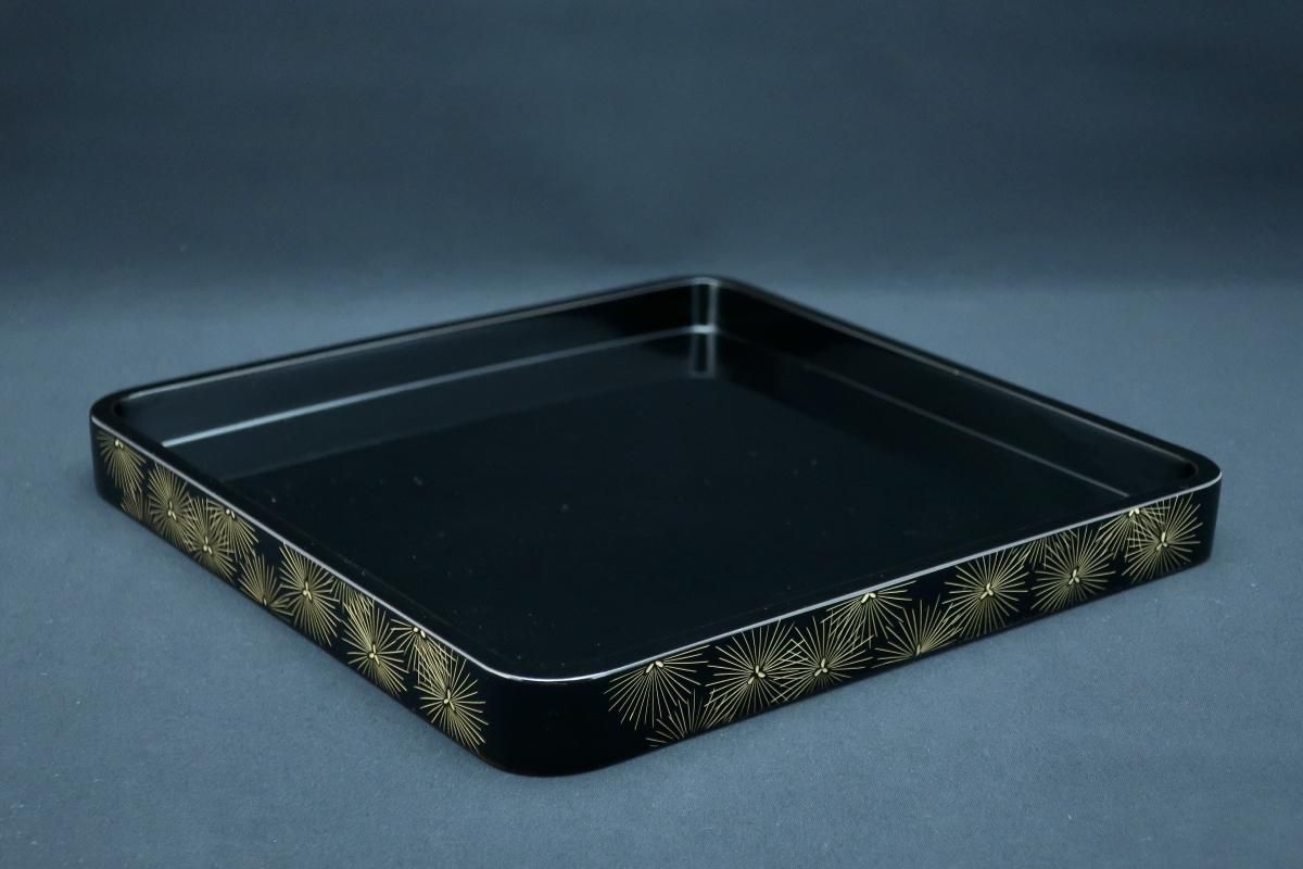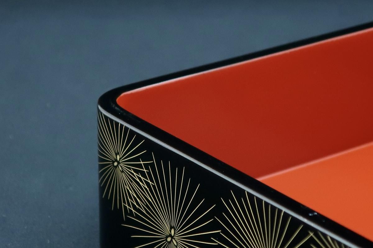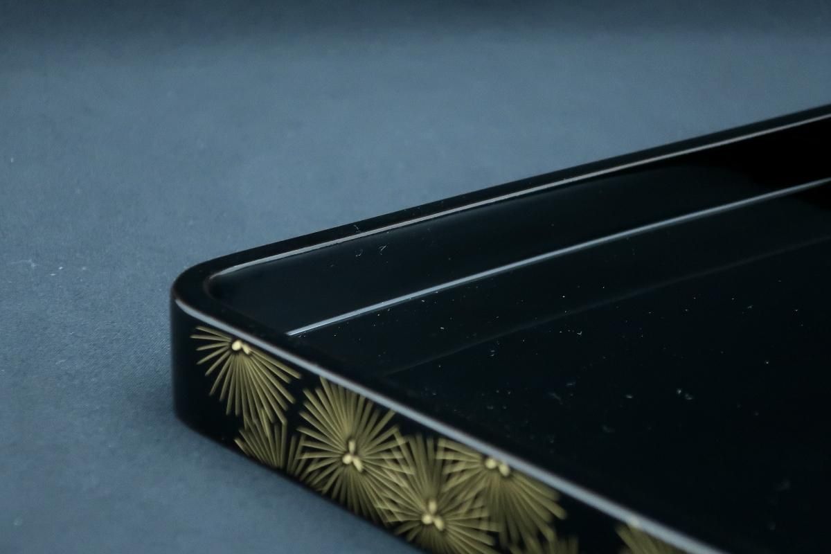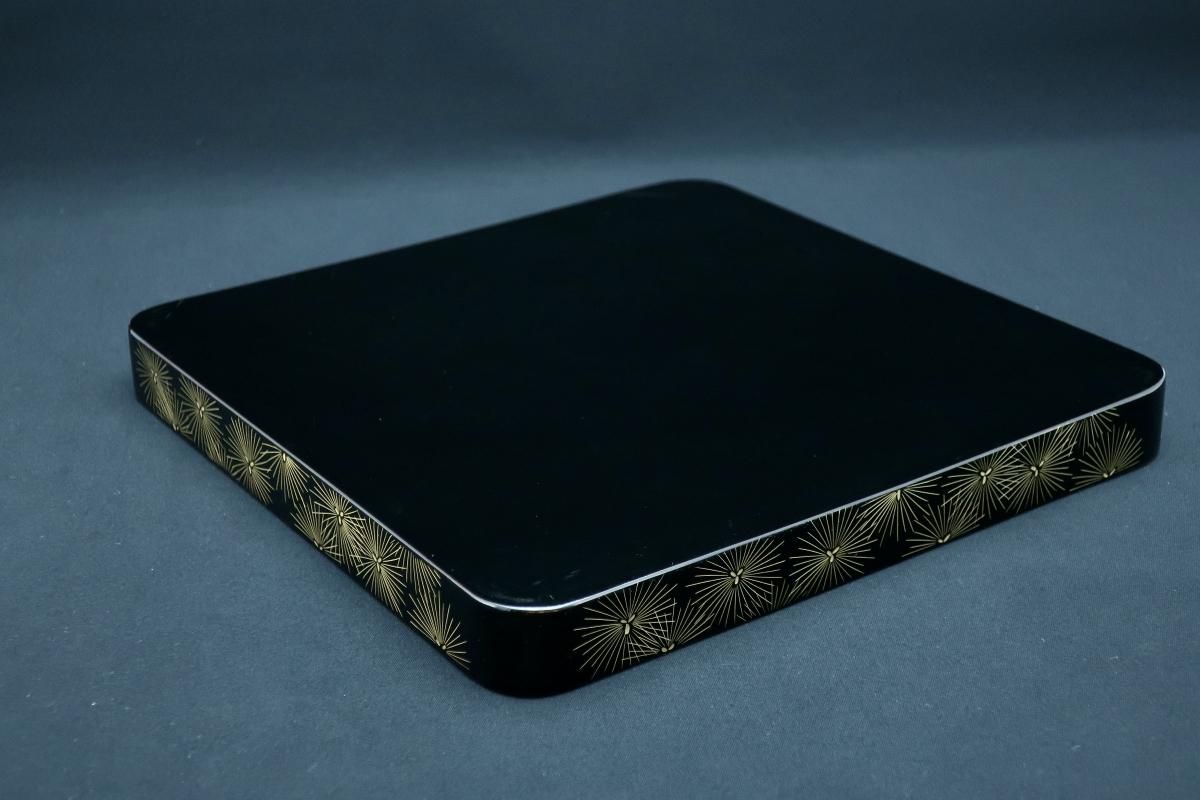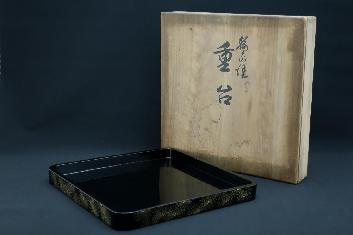 ☆古いものではありません。ほど未使用かと思われる松葉の蒔絵が綺麗な重箱。シンプルだけど輪島の蒔絵師さんのセンスが伝わるすっきりとしたデザインが魅力的です。おせちだけでなく幅広く楽しめそうですね。