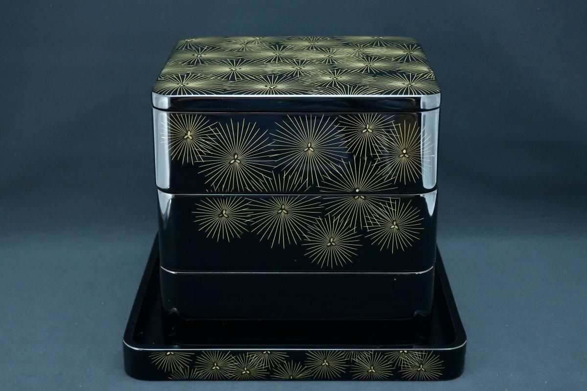輪島塗松蒔絵三段重&重台 / Wajima-lacquered 'Jubako' Food Boxes with 'Makie' pictures Pine & Tray