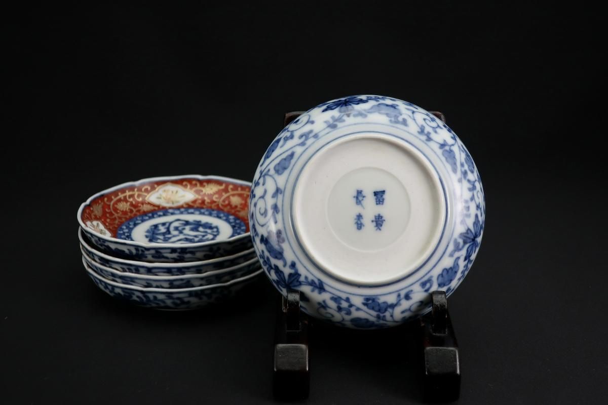 伊万里色絵金彩赤絵窓絵文小皿 五枚組(二枚小キズあり) / Imari Small Polychrome Plates set of 5