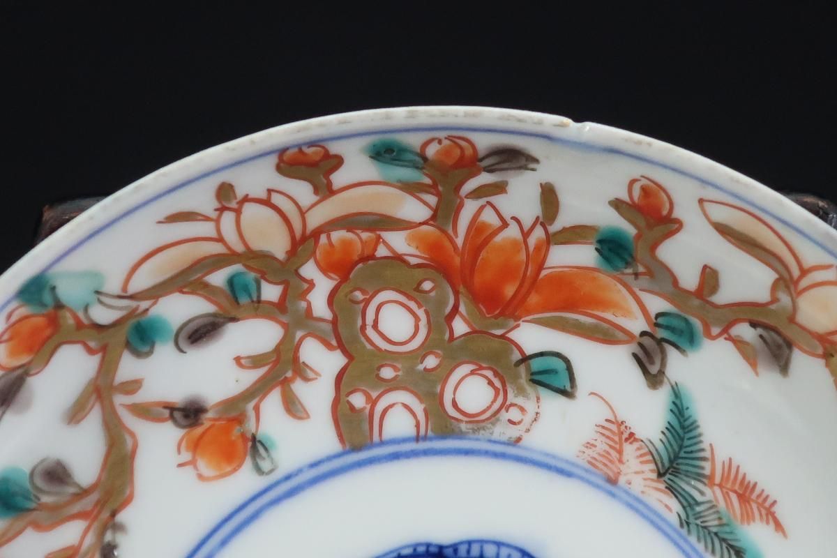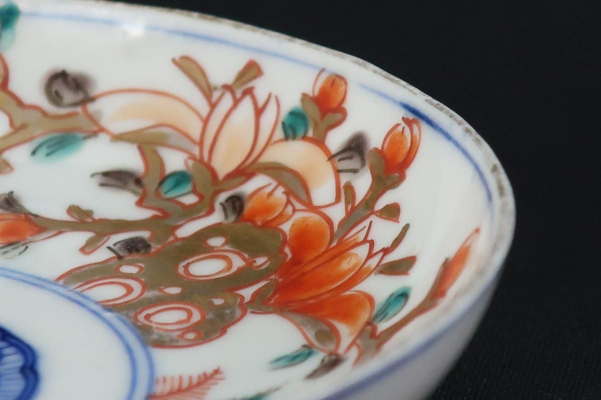 ☆可憐な木蓮と小鳥の図が可愛らしい四寸皿。見込みの龍とは対照的なのが古伊万里独特で面白いところ。お手頃価格も魅力です。