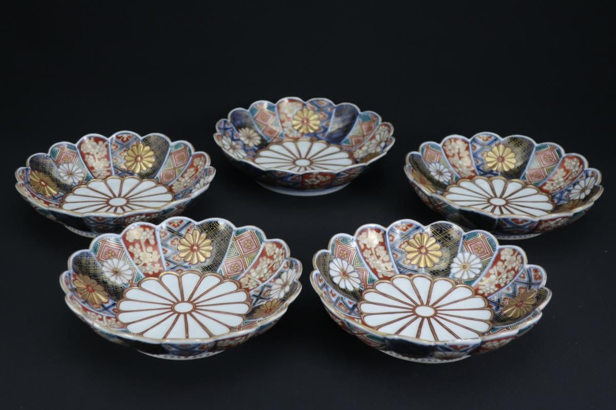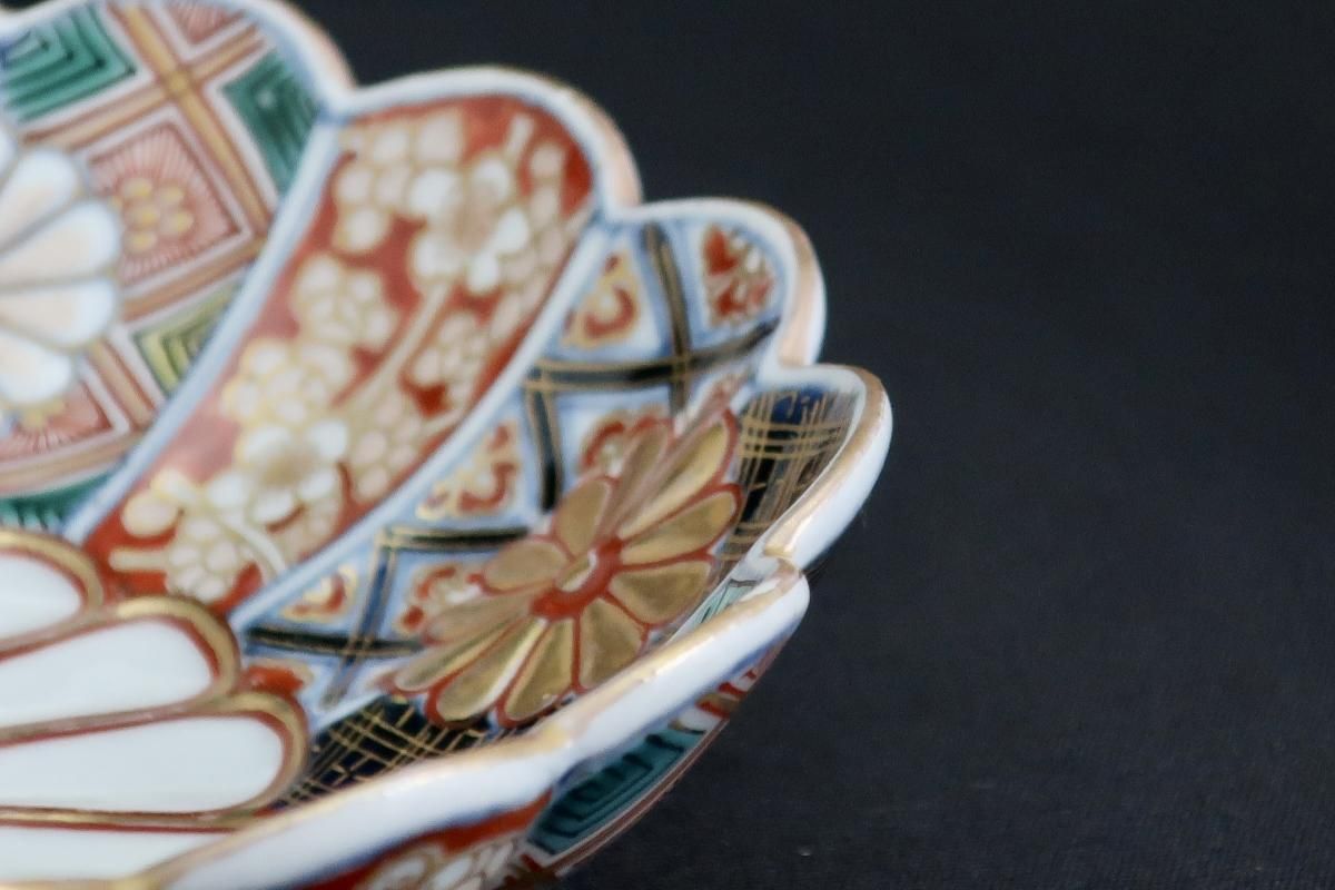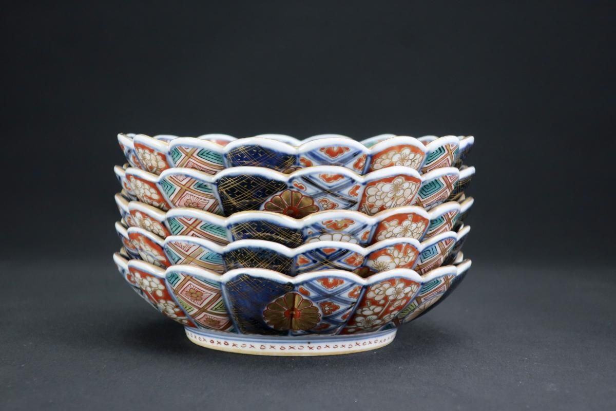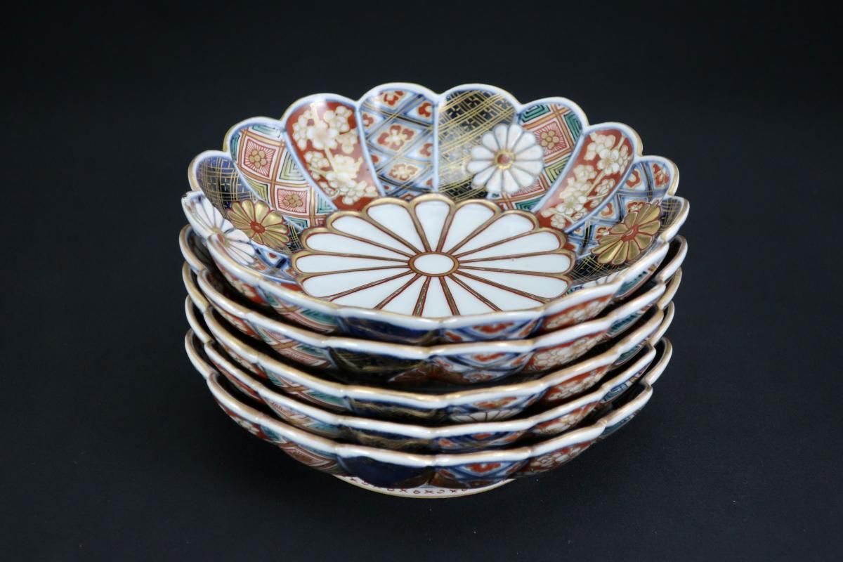 大聖寺伊万里菊花形なます皿 五枚組 / Daishoji Imari Chrysanthemum-flower shaped Polychrome 'Namasu' Bowls set of 5