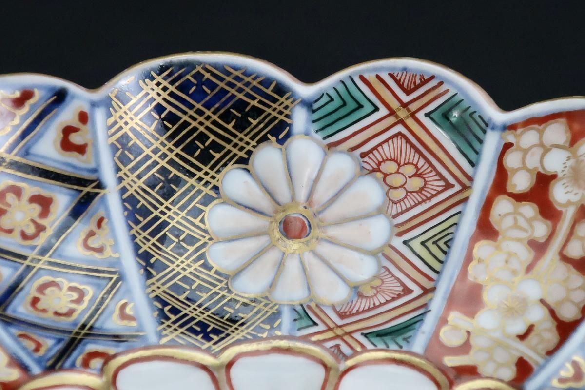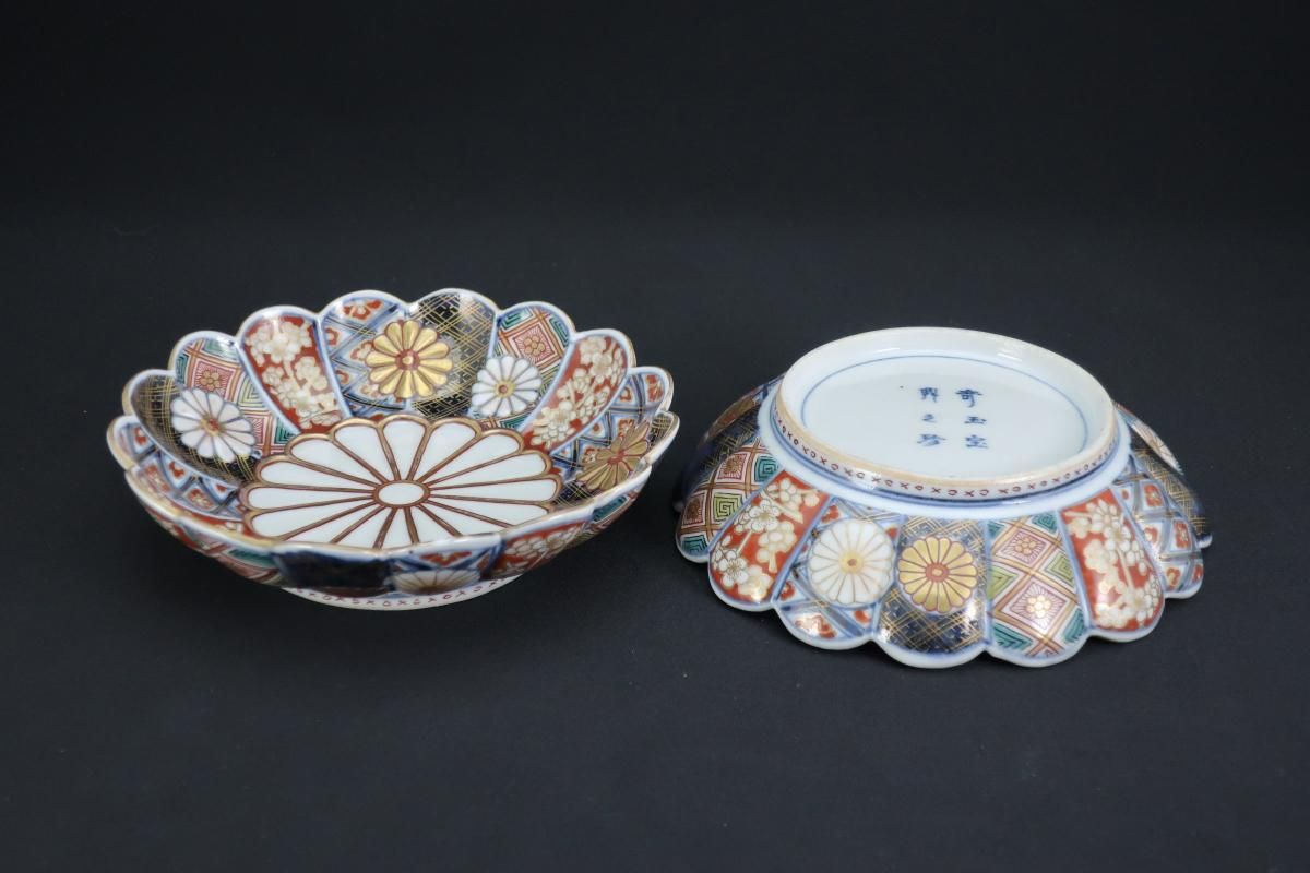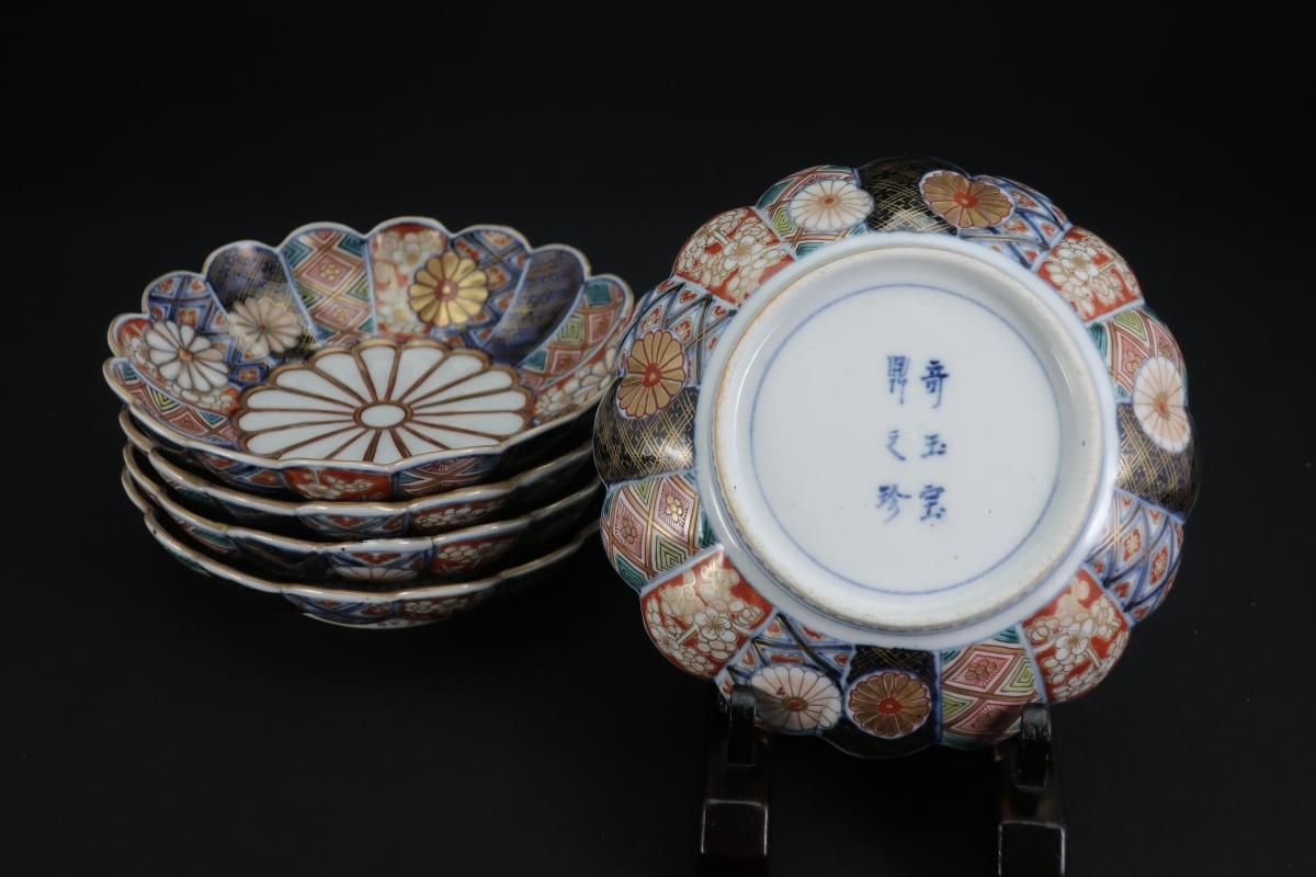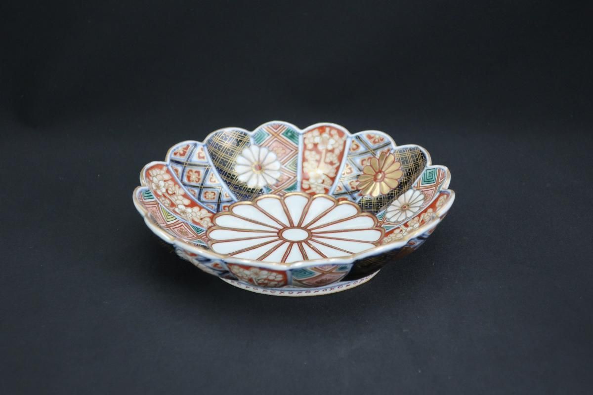 大聖寺伊万里菊花形なます皿 五枚組 / Daishoji Imari Chrysanthemum-flower shaped Polychrome 'Namasu' Bowls set of 5