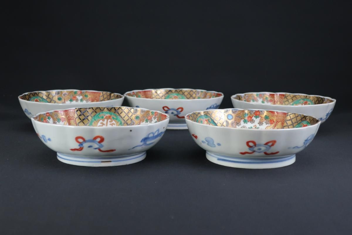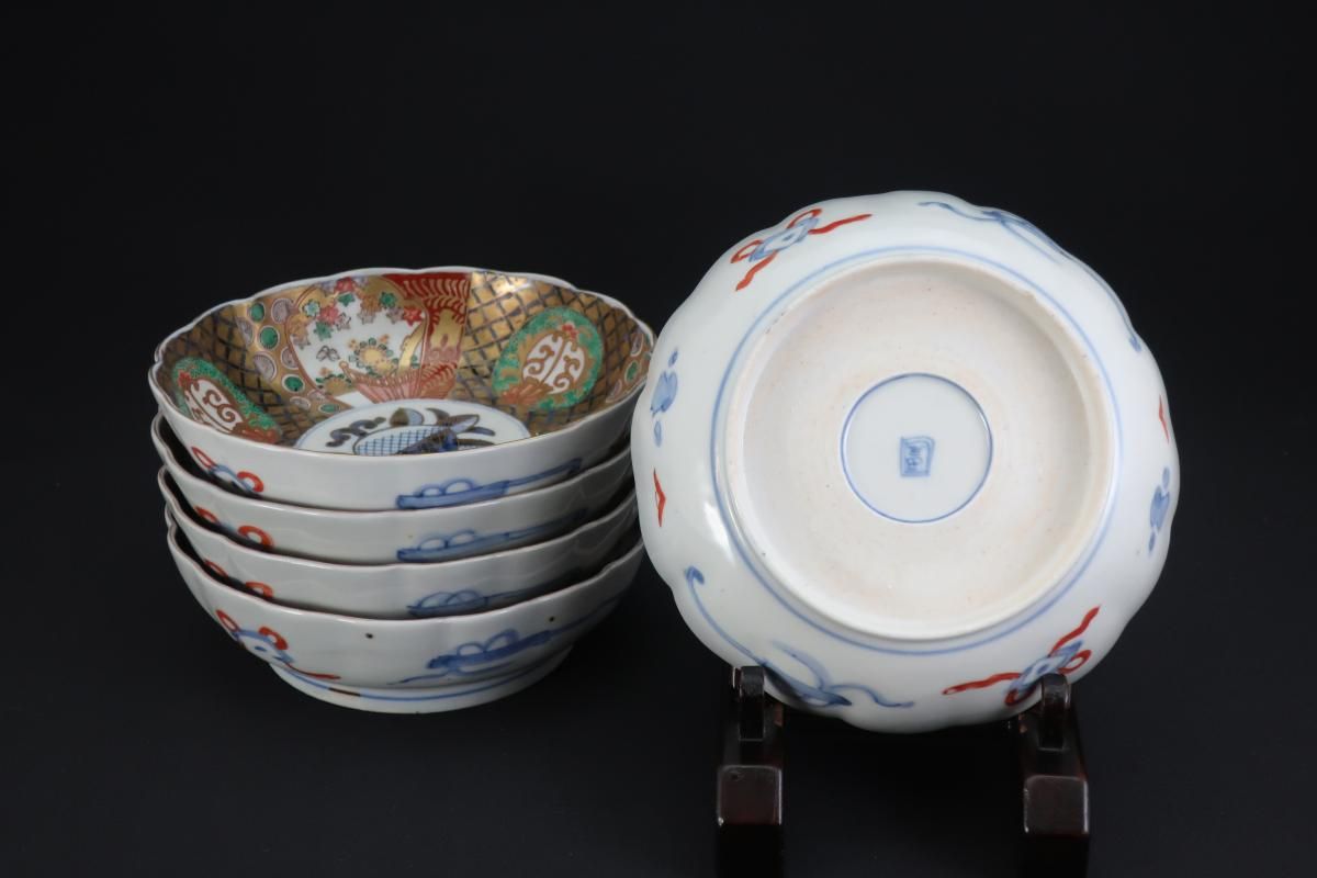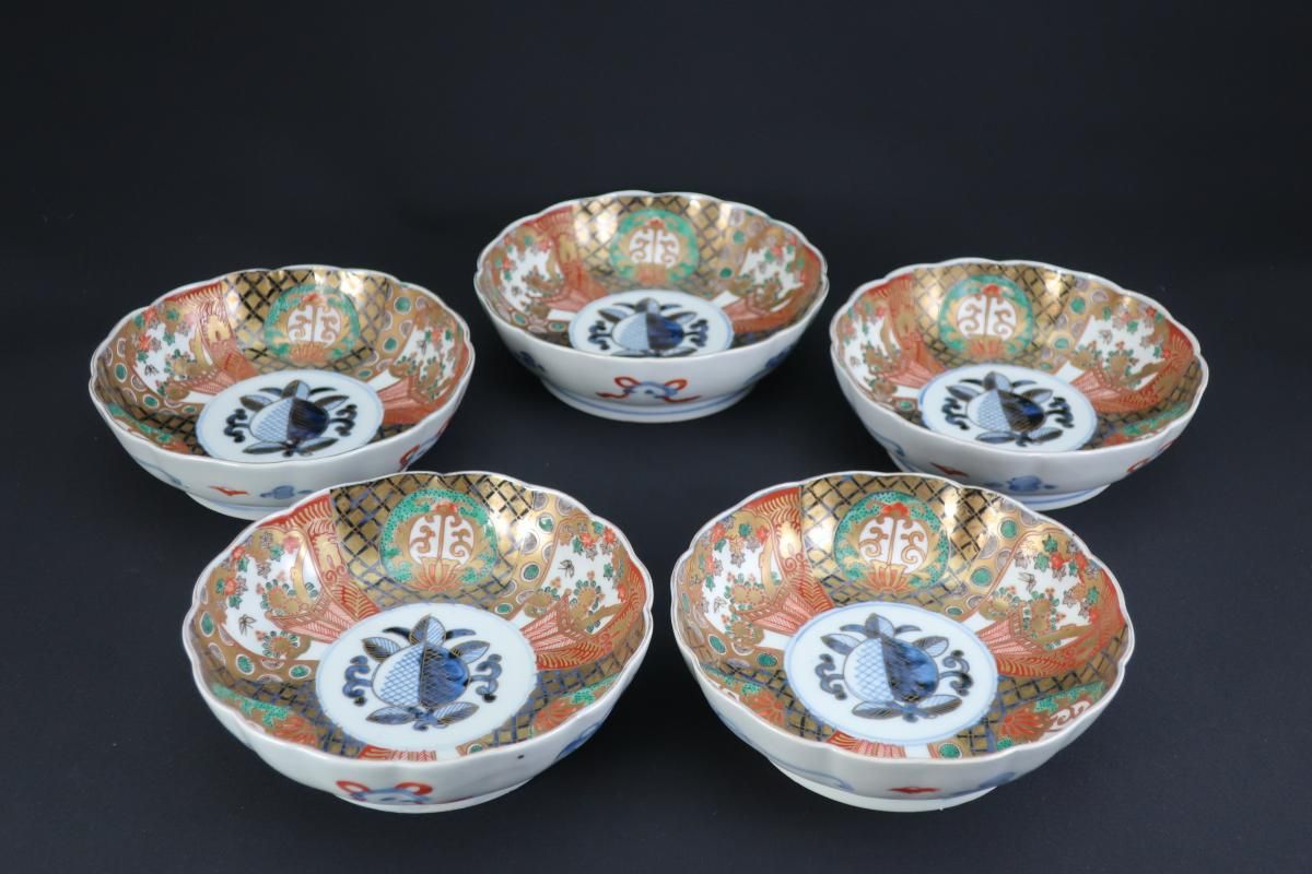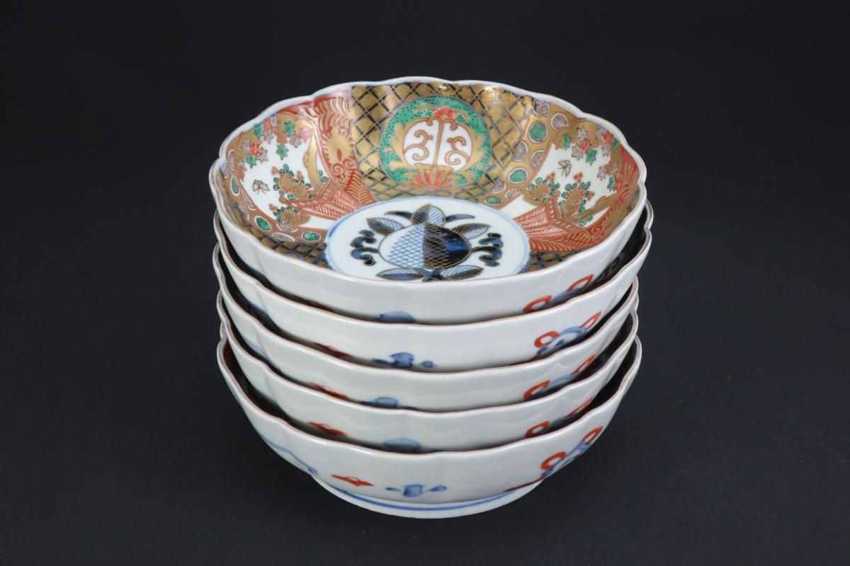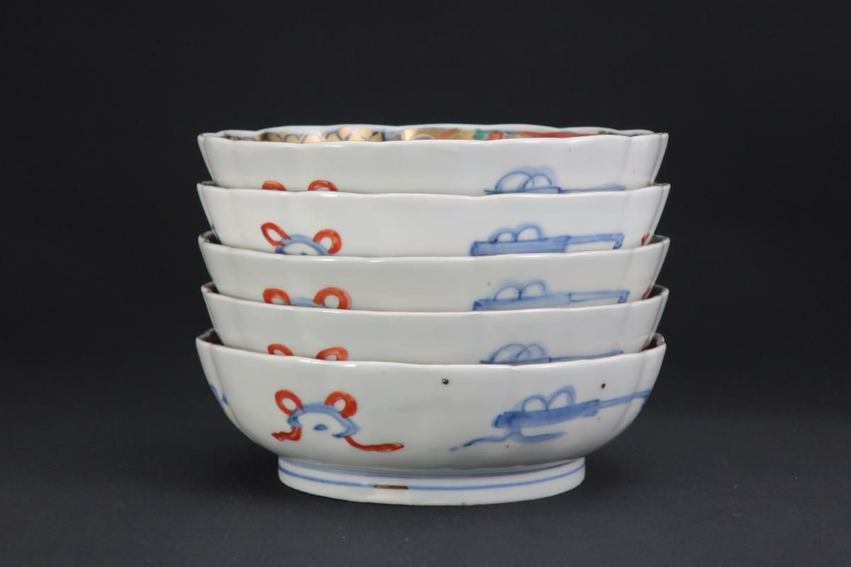 伊万里色絵草花文なます皿 五枚組 / Imari Polychrome 'Namasu' Bowls set of 5
