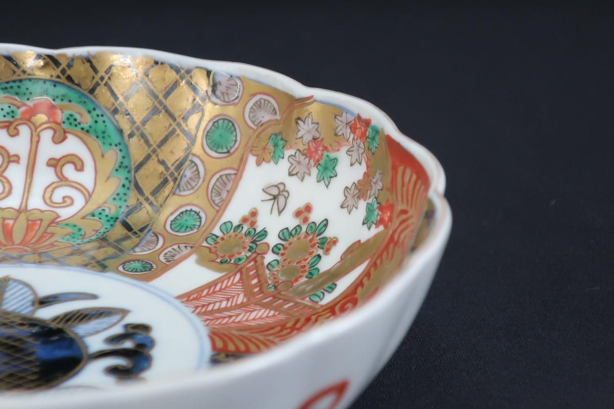 ☆お馴染みの桃が見込みの明治伊万里のなます皿。金彩が多く色鮮やかなものが多い明治伊万里。普段使いはもちろん、お祝いの席にも是非お楽しみください。