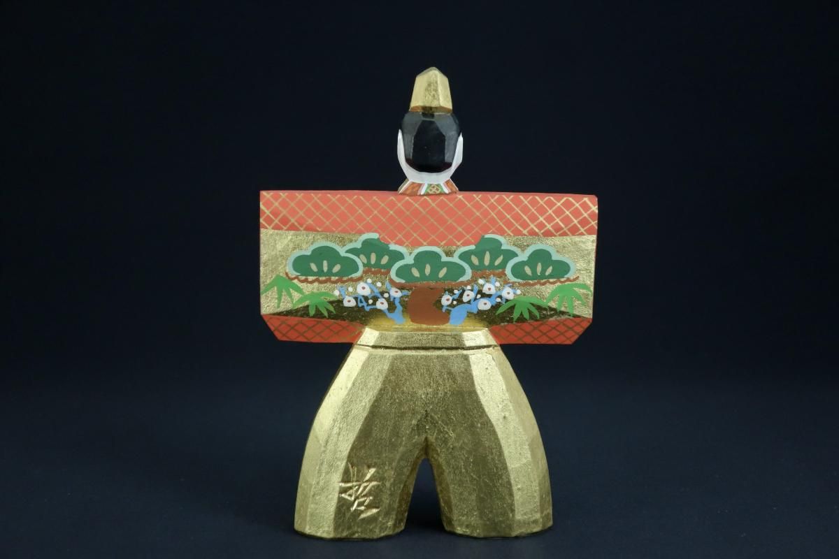 ☆気軽に飾ることが出来るのが一刀彫の人形の良いところ。風情豊かだし、金箔も豪華で存在感十分の立雛です。まさに大人の雛祭りという感じで楽しめそうです。