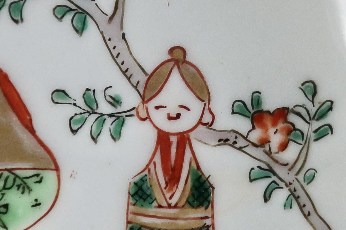☆ニコニコ笑顔の立雛の絵付けが可愛らしいなます皿。余白を生かして人形が際立つ絵付けのものは探してもなかなか見つかるものではありません。お人形代わりにこんなアンティークのお皿を皿立てに立てて飾っても素敵です。