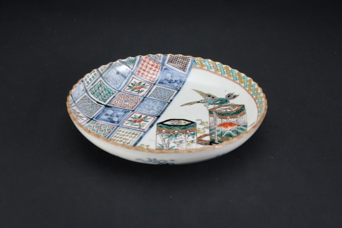 伊万里色絵貝桶石畳文五寸皿 / Imari Polychrome Plate