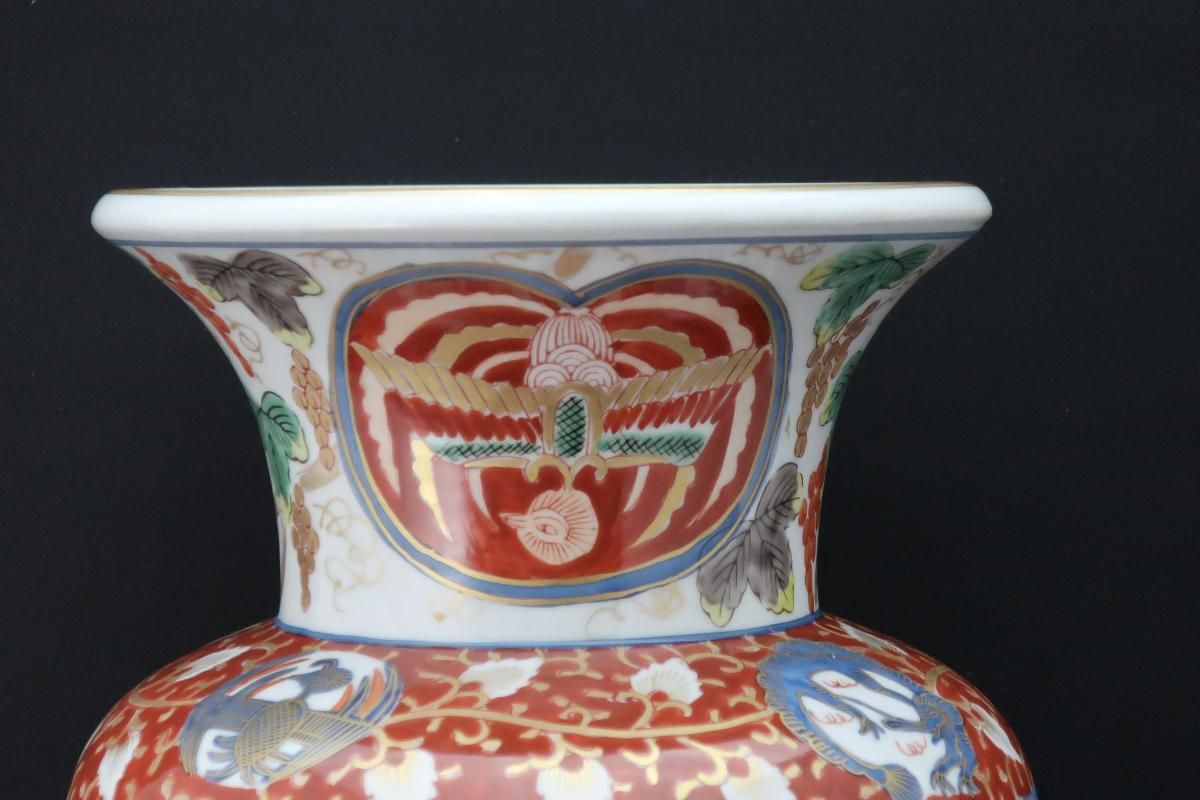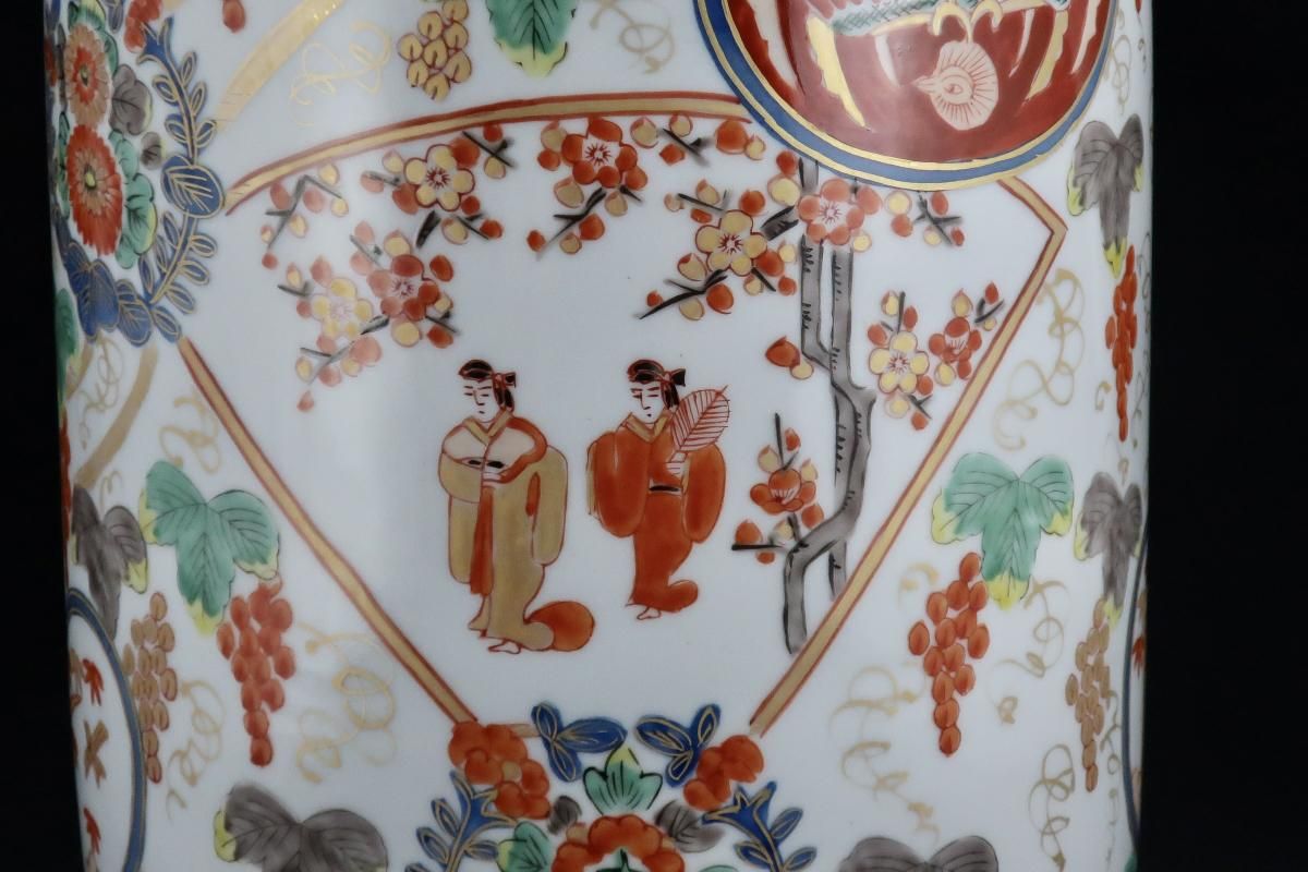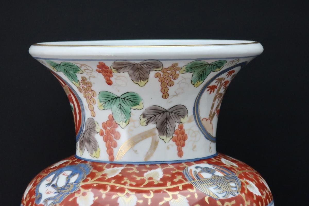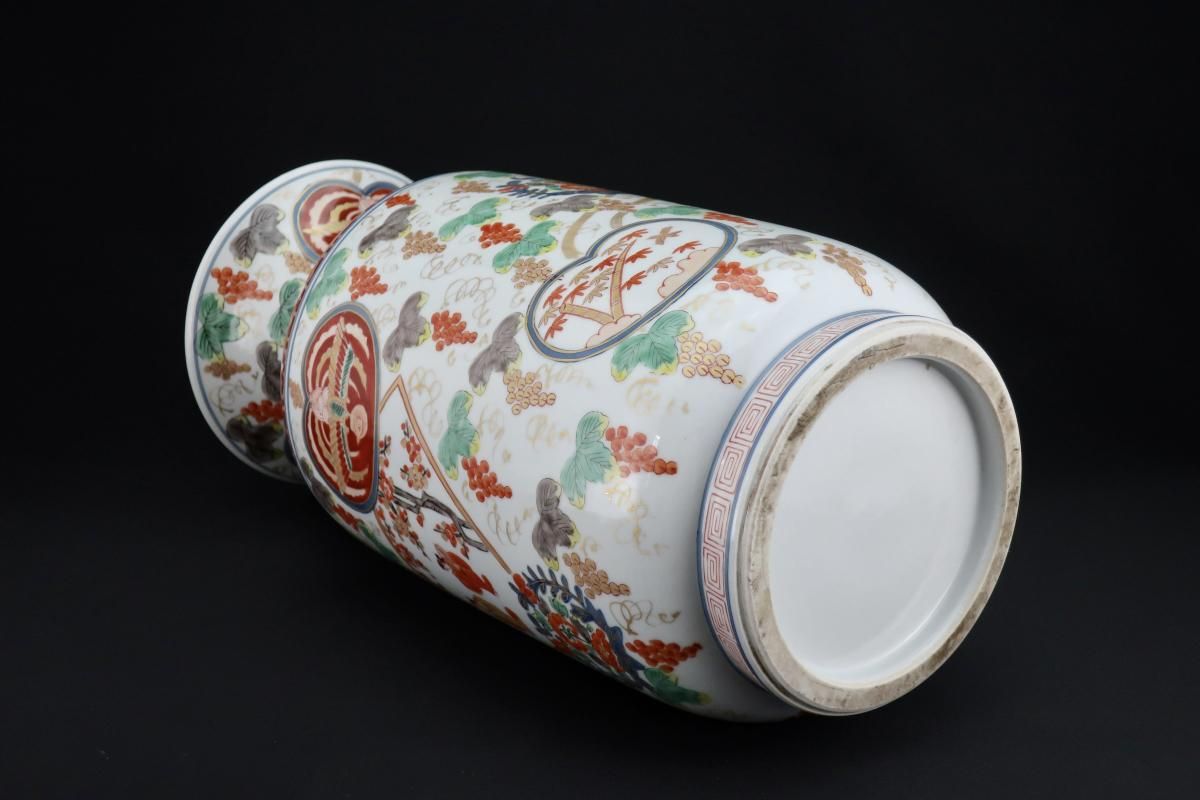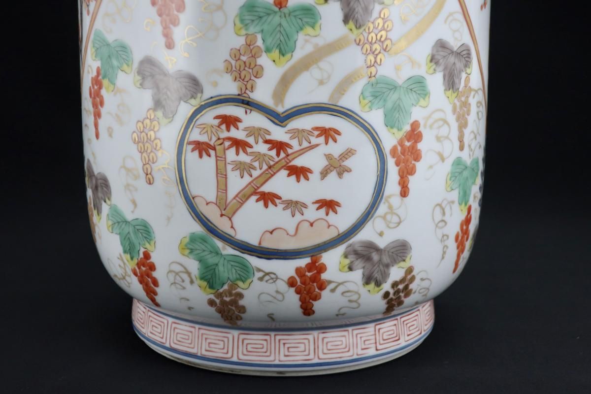 ☆ダイナミックなサイズの色絵花瓶。葡萄の文様を中心に様々なモチーフが描かれていて見応え十分。とっておきの場所に飾ってください。