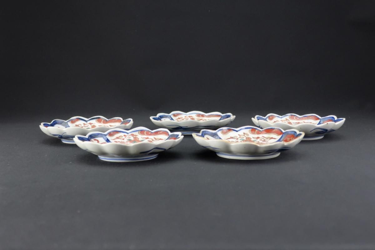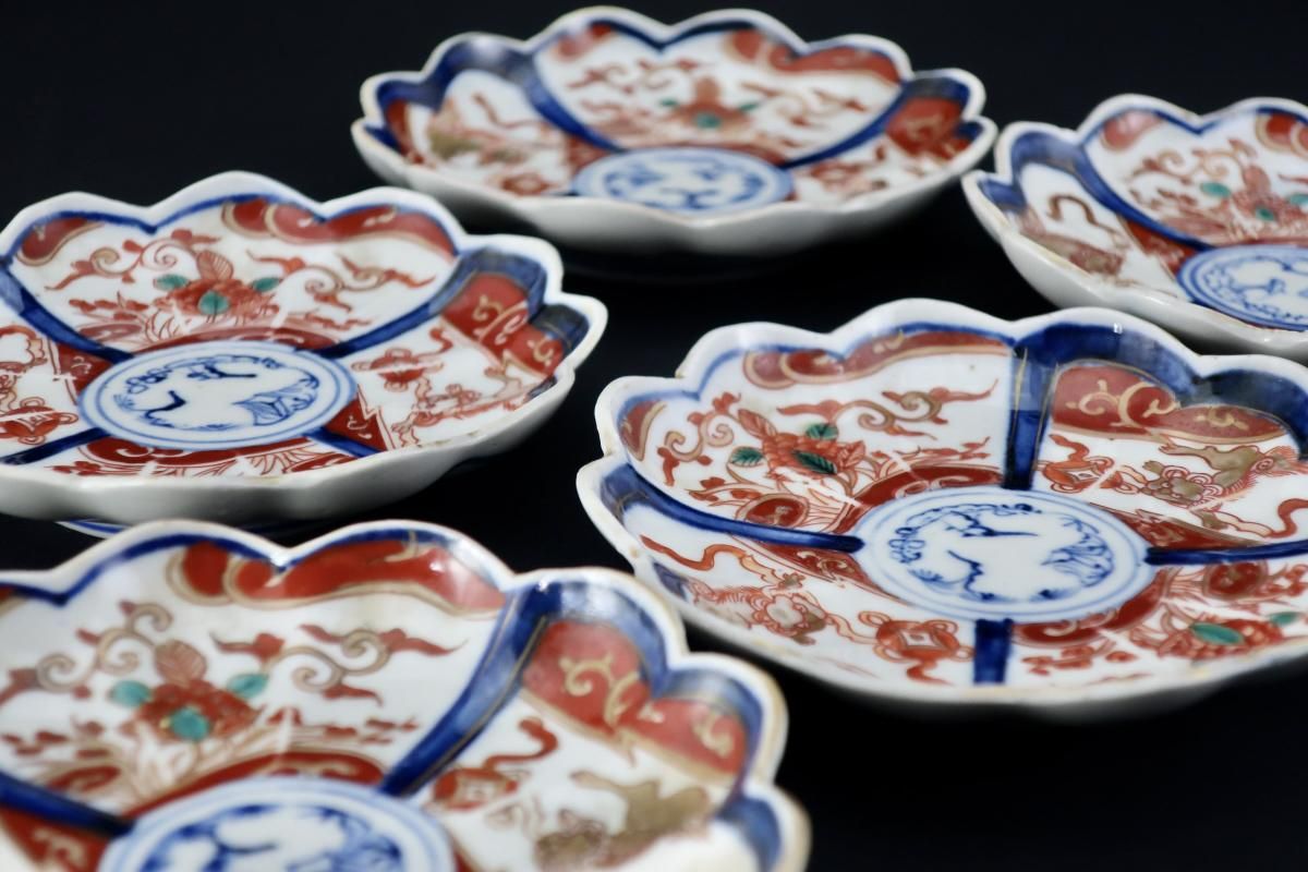 伊万里色絵輪花形四寸皿 五枚組 / Imari small Flower-shaped Plates set of 5