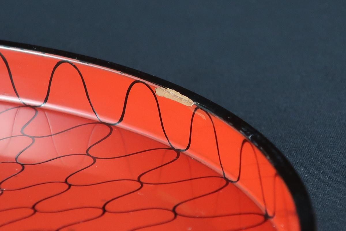 朱塗網蒔絵小丸盆 五枚組 / Red-lacquered Round Trays with Fish net pattern set of 5