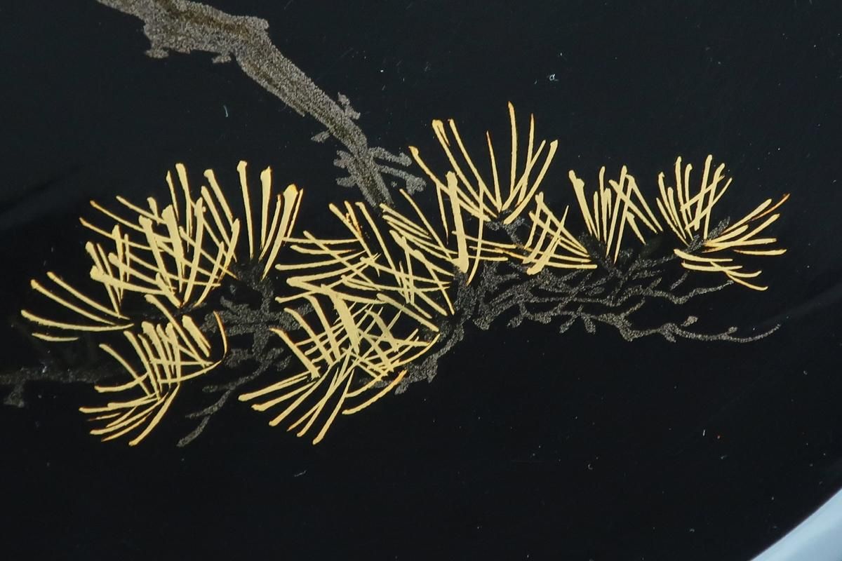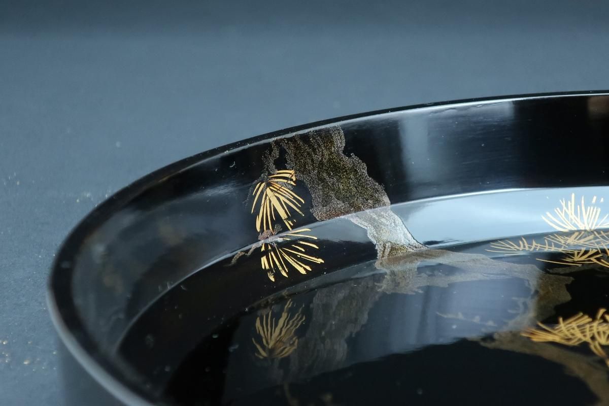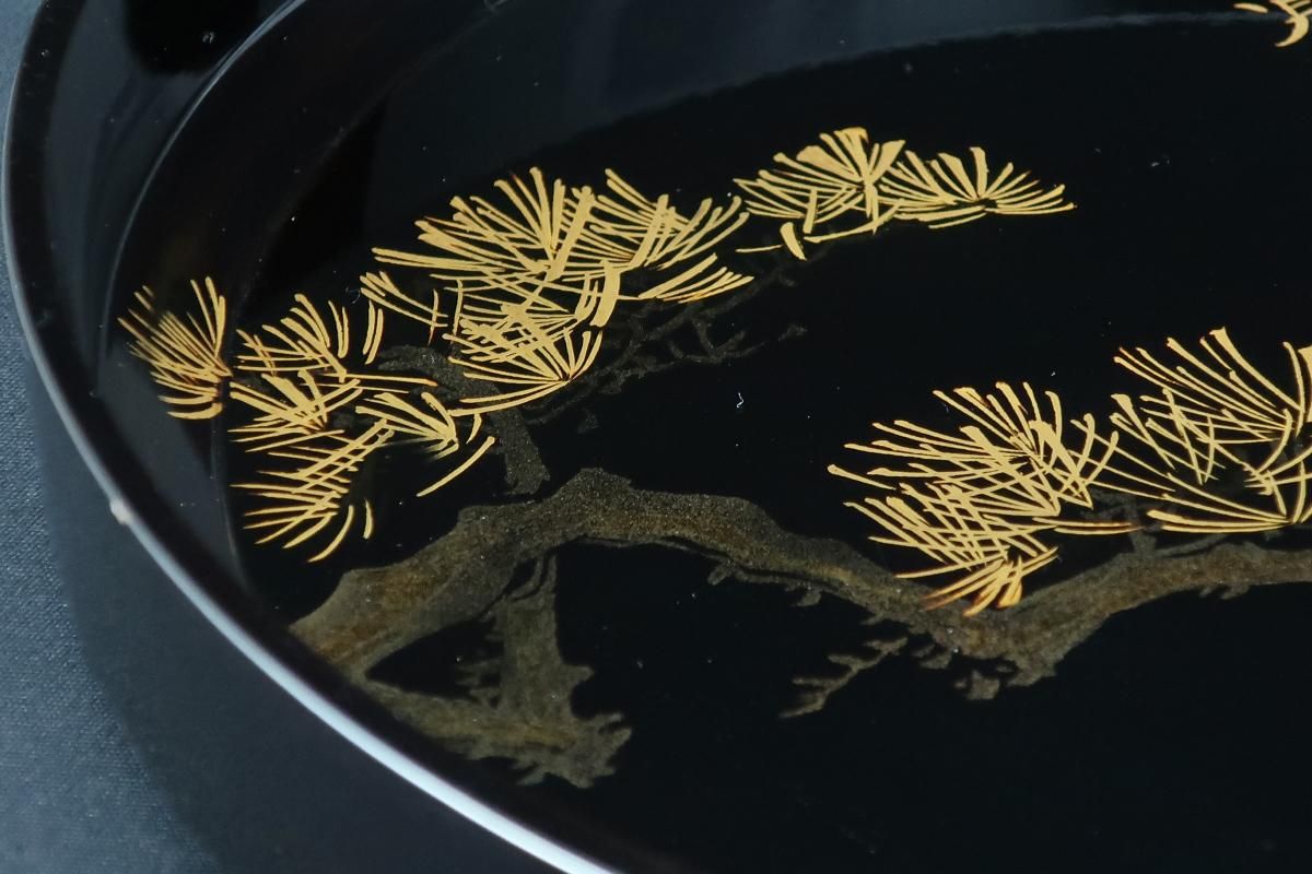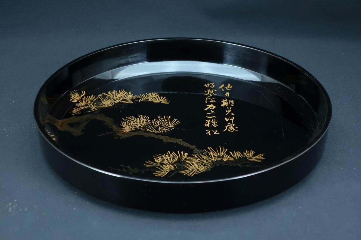 松蒔絵黒塗丸硯蓋 / Black-lacquered Round Tray with 'Makie' picture of Pine tree